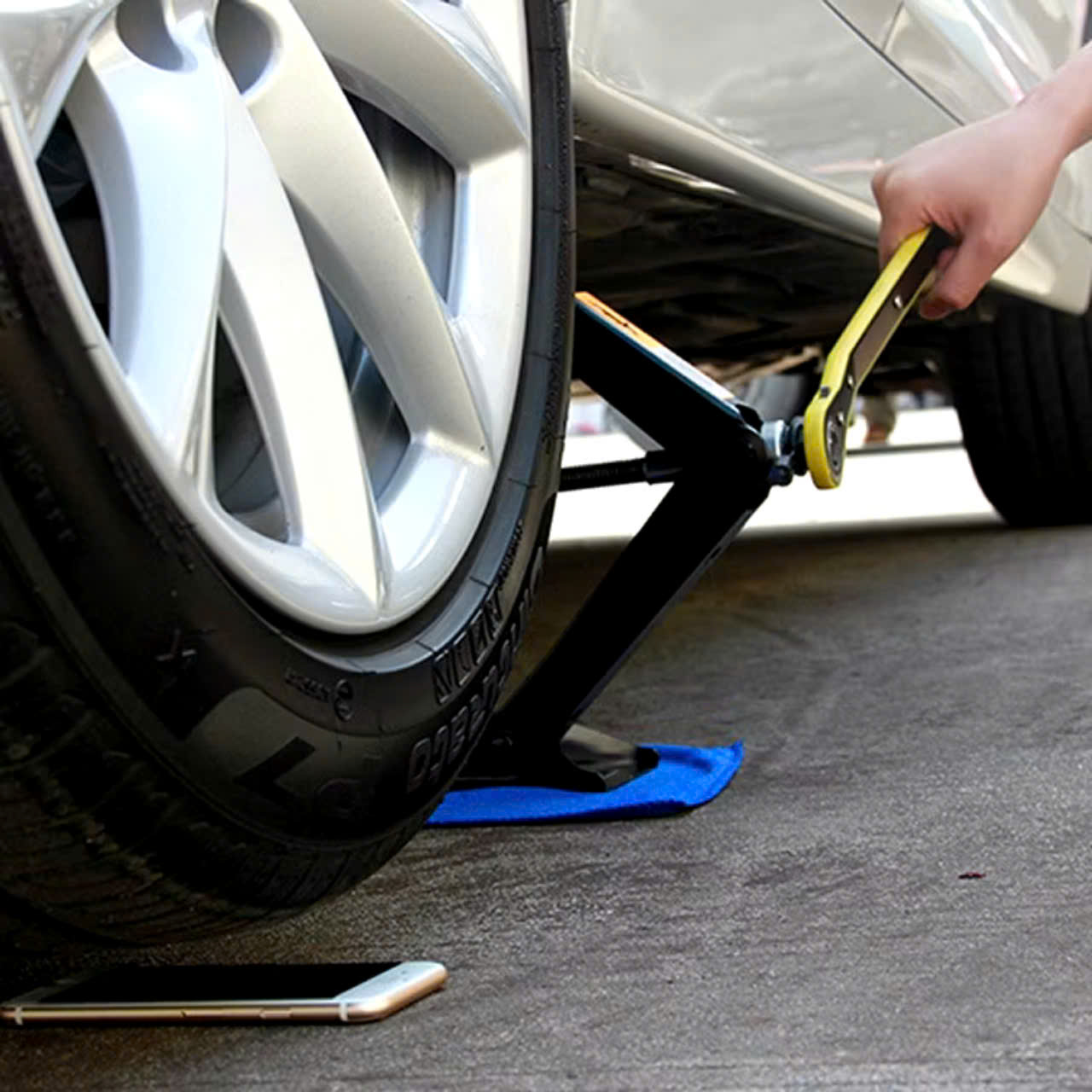 - Bao gồm 1 kích và một cờ lê, giúp bạn dễ dàng thao thác và tiết kiệm được 95% sức lực và thời gian khi thay lốp trên đường.