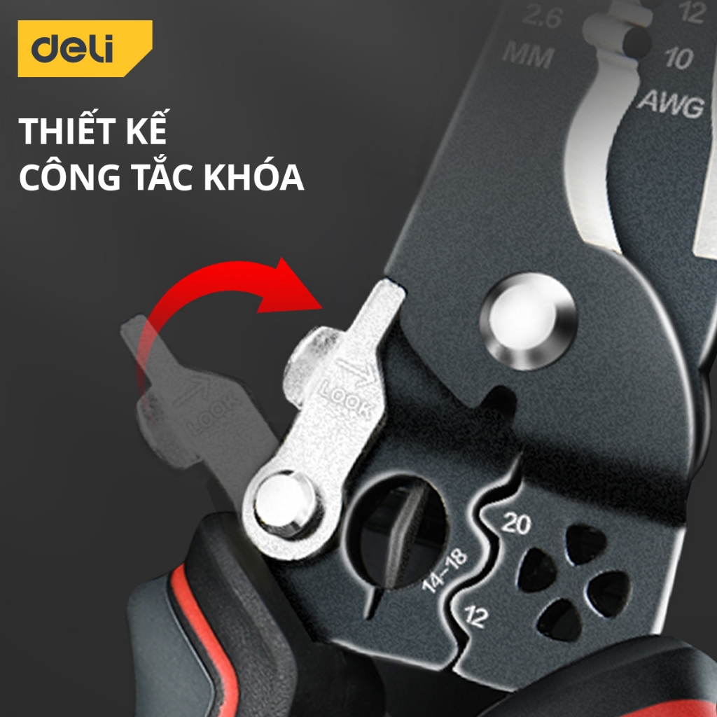 Kìm Bấm Dây Điện Deli Chính Hãng - Thép Cao Cấp, Điều Chỉnh Lực Tuốt Dây Dễ Dàng