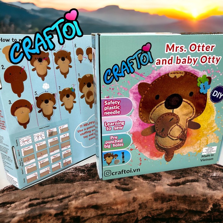 ✨KIM NHỰA Bộ Thủ Công Trẻ Tự Làm Thú Bông 5+ Otter Mrs. Otter & Baby Otty Craftoi Felt Sewing toy prepunched holes plastic needle