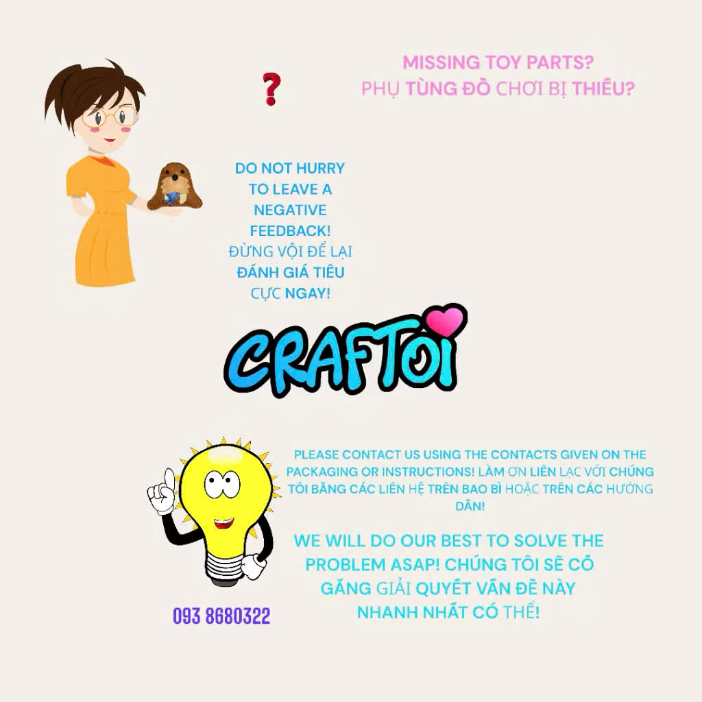 Mua tại Tiktok*** Thông tin sản phẩm Mã hàng: OWL OWLIVIA Tuổi sử dụng: 5+ Kích thước: 19x14 cm Một bộ bao gồm: 12 bộ phận làm bằng vải nỉ Bông nhồi Chỉ may và bông nhồi Kim an toàn làm bằng nhựa Bảo quản: trong phòng khô thoáng. Thành phần: polyester, nhựa. Năm sản xuất: 2023 Độ bền của sản phẩm: sử dụng không giới hạn!!! Xuất xứ VIỆT NAM !!!!!!! Được Trung Tâm Giám Định Và Chứng Nhận Hợp Chuẩn Hợp Quy VietCert đánh giá chứng nhận phù hợp Quy chuẩn QCVN 3:2019/BKHCN của Bộ Khoa Học - Công nghệ. Đồ chơi sáng tạo từ nhồi bông. Hãy bắt đầu may con búp bê đầu tiên của bạn!!! Cực kì dễ dàng may với lỗ đục săn và kim làm bằng nhựa rất an toàn. Bé tự may thú bông cho mình Các bạn nhỏ tự tay may vá Vì mất nhiều thời gian tự may, bé sẽ yêu quý con thú bông của mình hơn. Rèn luyện tính kiên nhẫn kỹ năng tư duy logic cho trẻ em Sử dụng vải sang trọng an toàn Mềm mại hơn, thích hợp cho bé chơi Được làm từ bông PP mềm Tự làm thú nhồi bông sẽ giúp trẻ nâng cao kỹ năng tập trung, khéo léo của đôi bàn tay. Đồng thời giúp trẻ trân trọng và nâng niu hơn những gì do chính tay mình làm ra. Bộ sản phẩm handmade Sewing giúp trẻ em tự làm thú nhồi bông một cách dễ dàng. Rất đơn giản, trẻ có thể dễ dàng dùng KIM NHỰA khâu các miếng nỉ được đã đục lỗ sẵn cùng với chỉ thêu đính kèm, và sau đó nhồi thêm bông để tạo ra một con vật vô cùng đáng yêu. Mẹ hãy giúp em thực hiện món đồ này để có những kỉ niệm thật vui với nhau nha! Tất cả đã gói gọn trong bộ sản phẩm tự làm thú nhồi bông của Craftoi, vô cùng an toàn và lại rất dễ. OWL OWLIVIA Creativity set. Stuffed toy. Sewing my first doll !!! Easy to sew with a prepunched holes and safety plastic needle. 5+ DIMENSIONS: 19x14 cm THE SET INCLUDES: 12 FELT PARTS STUFFING THREADS SAFETY PLASTIC NEEDLE Storage: in dry ventilated rooms. Materials: polyester, plastic. Service life is not limited !!! MADE IN VIETNAM Has been assessed to conform to the Standard OCIN 3:2019 BKHCN of the Ministry of Science and Technology by VIETCERT CERTIFICATION AND INSPECTION CENTRE