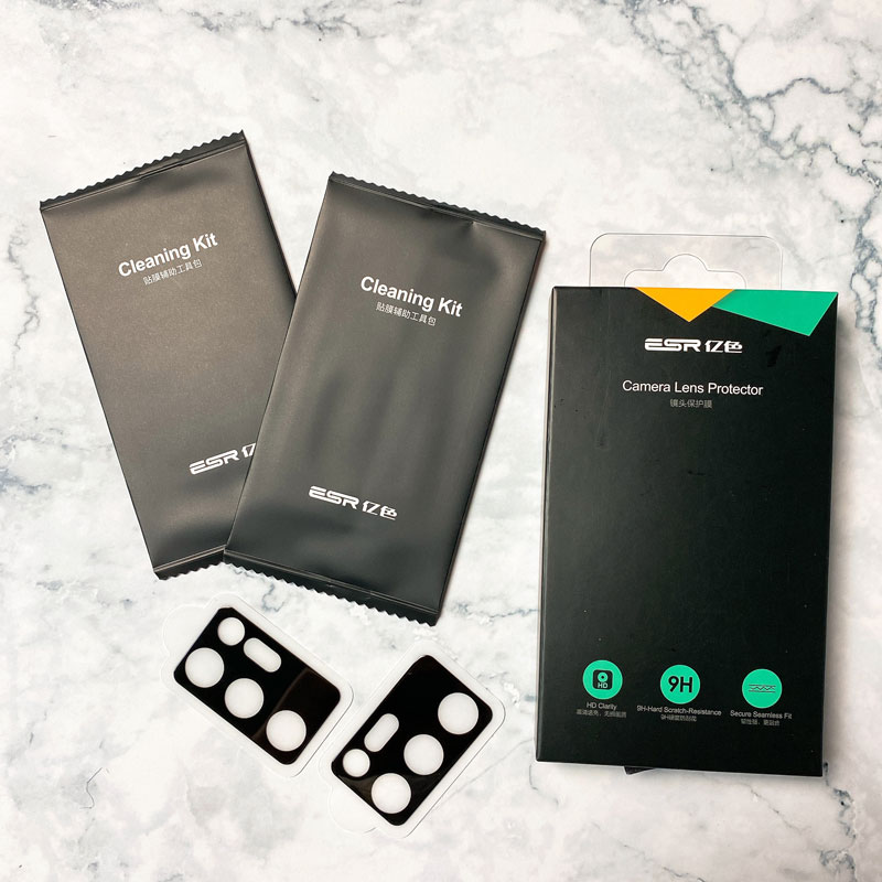 ESR trang bị 2 bộ kit vệ sinh gồm khăn lau và các miếng sticker lấy bụi, giúp việc dán vào trở nên dễ dàng, đơn giản và không để lại hiện tượng bóng bóng, không thoát khí sau khi hoàn thiện. Tháo gỡ dễ dàng nếu thao tác dán chưa chính xác, không bám keo vào cụm camera.