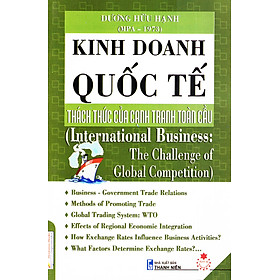 Mua tại TiktokKinh Doanh Quốc Tế - Thách Thức Của Cạnh Tranh Toàn Cầu Nội dung quyển sách Kinh Doanh Quốc Tế - Thách Thức Của Cạnh Tranh Toàn Cầu gồm các chương liên hệ sau: Chương 1: Toàn cầu hóa Chương 2: Các mối quan hệ giữa doanh nghiệp và chính quyền Chương 3: Lý thuyết thương mại quốc tế Chương 4: Hội nhập kinh tế khu vực (Regional economic integration) Chương 5: Thị trường hối đoái Chương 6: Hệ thống tiền tệ quốc tế IMS Chương 7: Đầu tư trực tiếp nước ngoài (Foreign Direct Investment: FDI) Chương 8: Các chiến lược xuất và nhập khẩu (Export and Import Strategies) Chương 9: Chiến lược và tổ chức quốc tế (International Strategy And Organization).