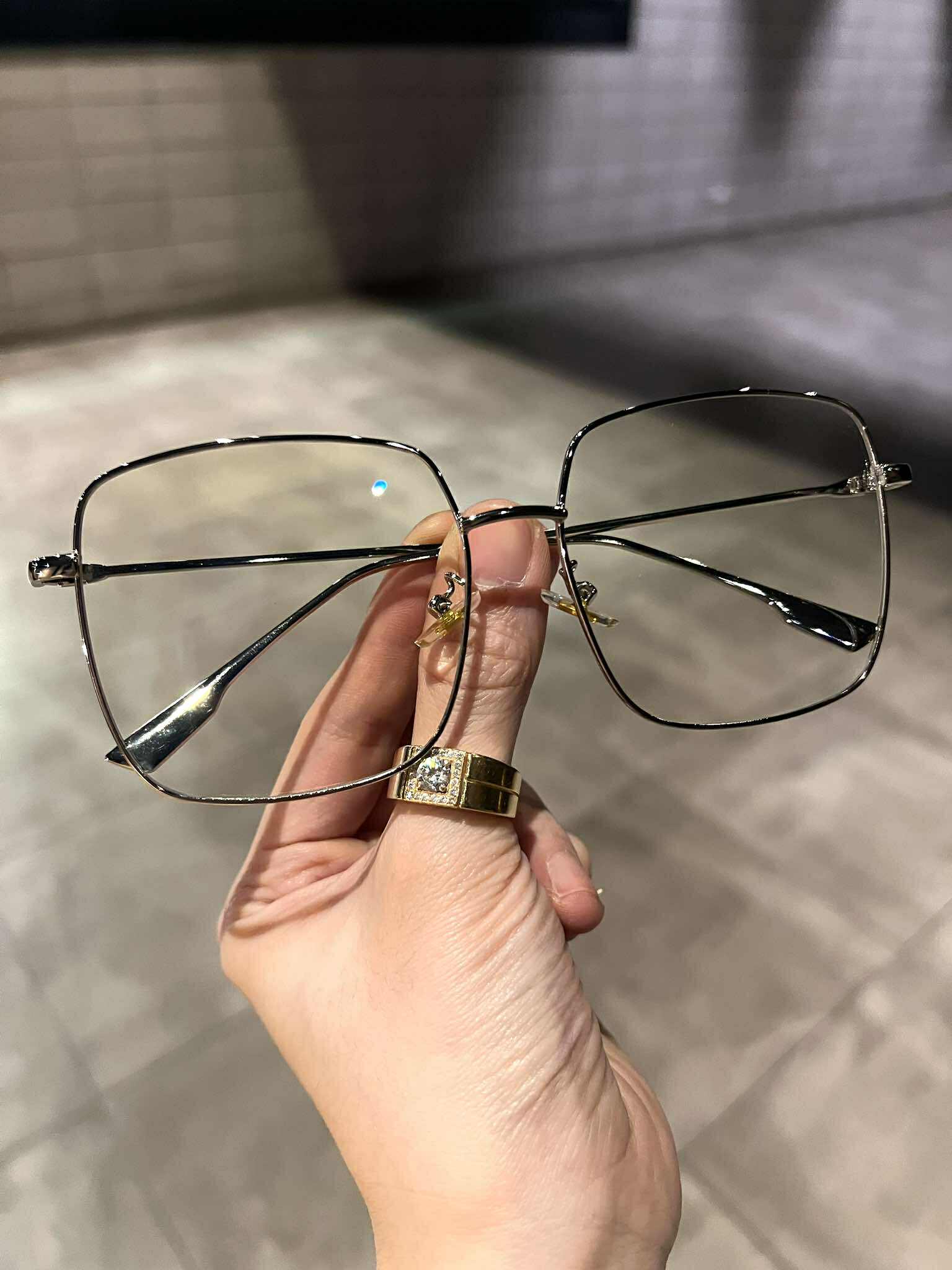 Kính mắt thời trang kim loại ulzzang Korea - Mắt kính chống ánh sáng xanh cao cấp - Giới tính: Nam và Nữ - Kiểu dáng: Vuông oversize - Chất liệu: Kim loại - Tặng