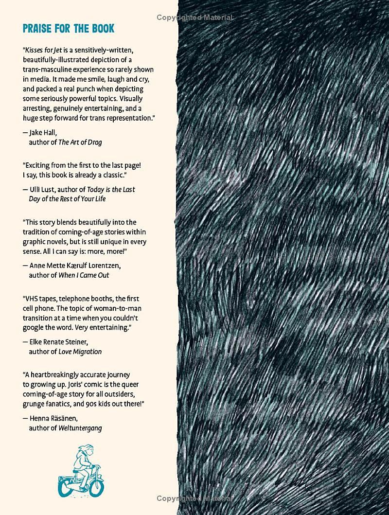 “Kisses for Jet is a sensitively written, beautifully-illustrated depiction of a trans-masculine experience so rarely shown in media…a huge step forward for trans representation.”