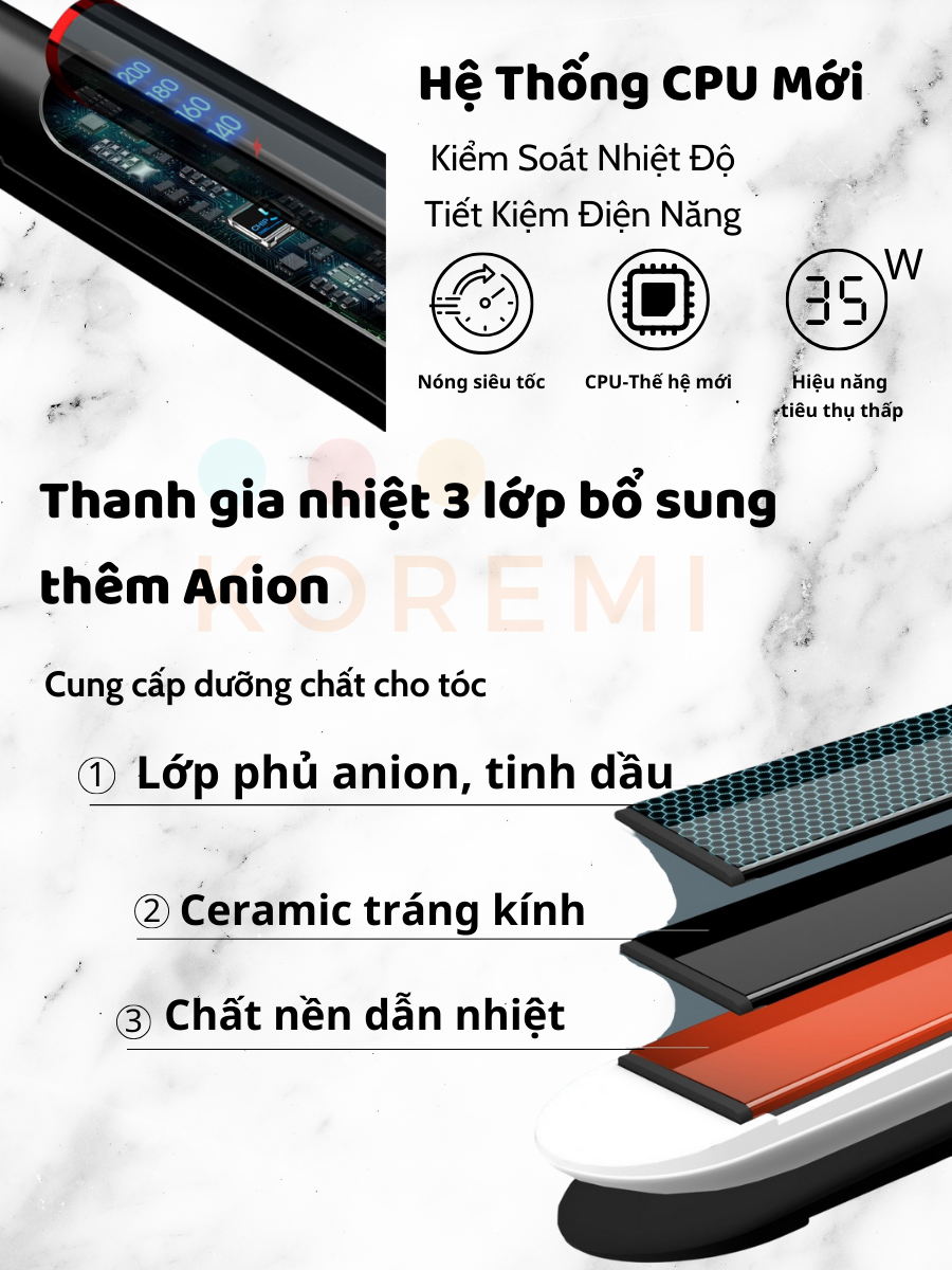 ✨KOREMI Máy uốn duỗi 3in1 Duỗi Thẳng, Uốn Xoăn, Làm Phồng Tóc X3 ion âm, Giúp tóc suôn mượt Hàng Chính Hãng
