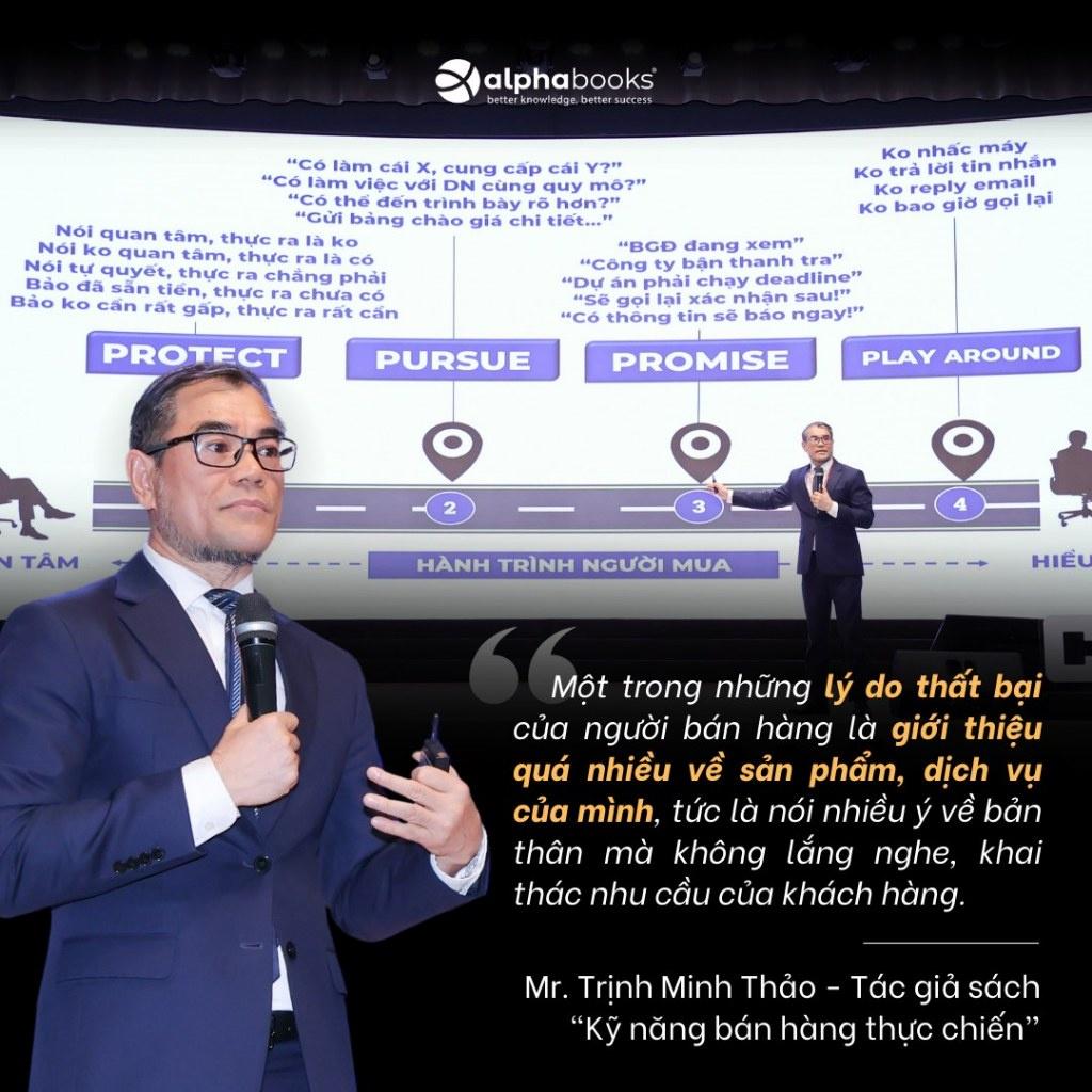 Tác giả còn đưa ra các “bài văn mẫu”, kịch bản cụ thể để người bán hàng có thể áp dụng thực hành ngay.