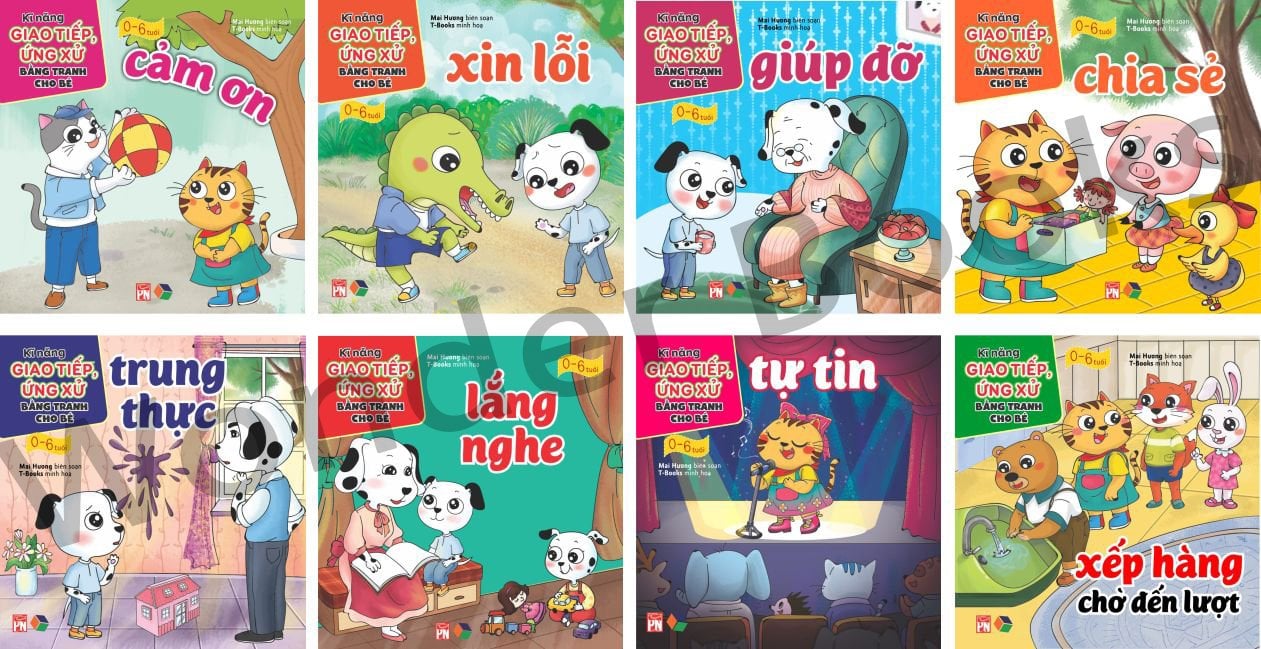 Bộ sách gồm 8 cuốn với các kĩ năng: Cảm ơn; Xin lỗi; Chia sẻ; Giúp đỡ; Tự tin; Trung thực; Lắng nghe; Xếp hàng chờ đến lượt.