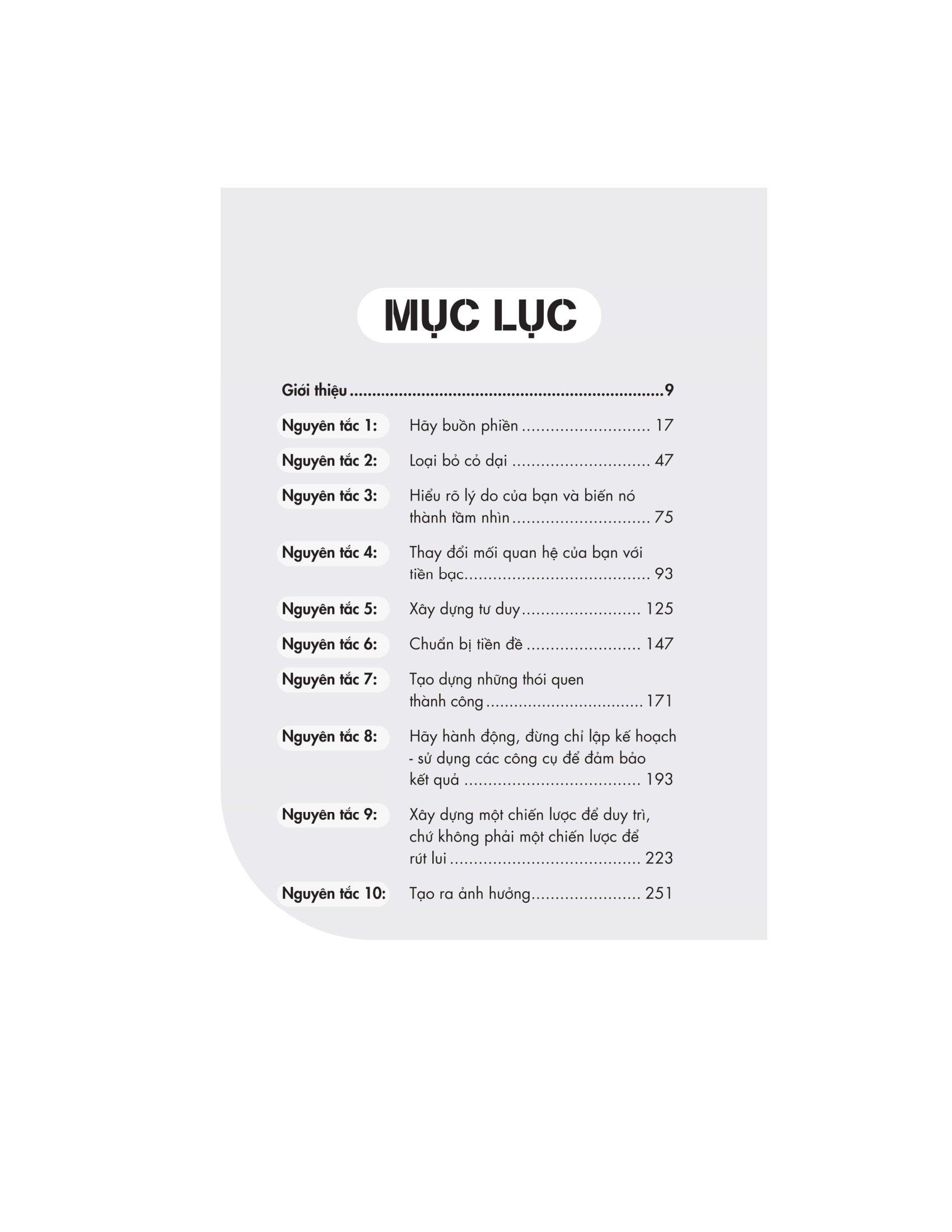 21 Nguyên Tắc Tự Do Tài Chính (Tái Bản) ------------ Không ai tốt bằng bạn và không ai thông minh hơn bạn. Những người thành công đơn giản là những người bình thường đã