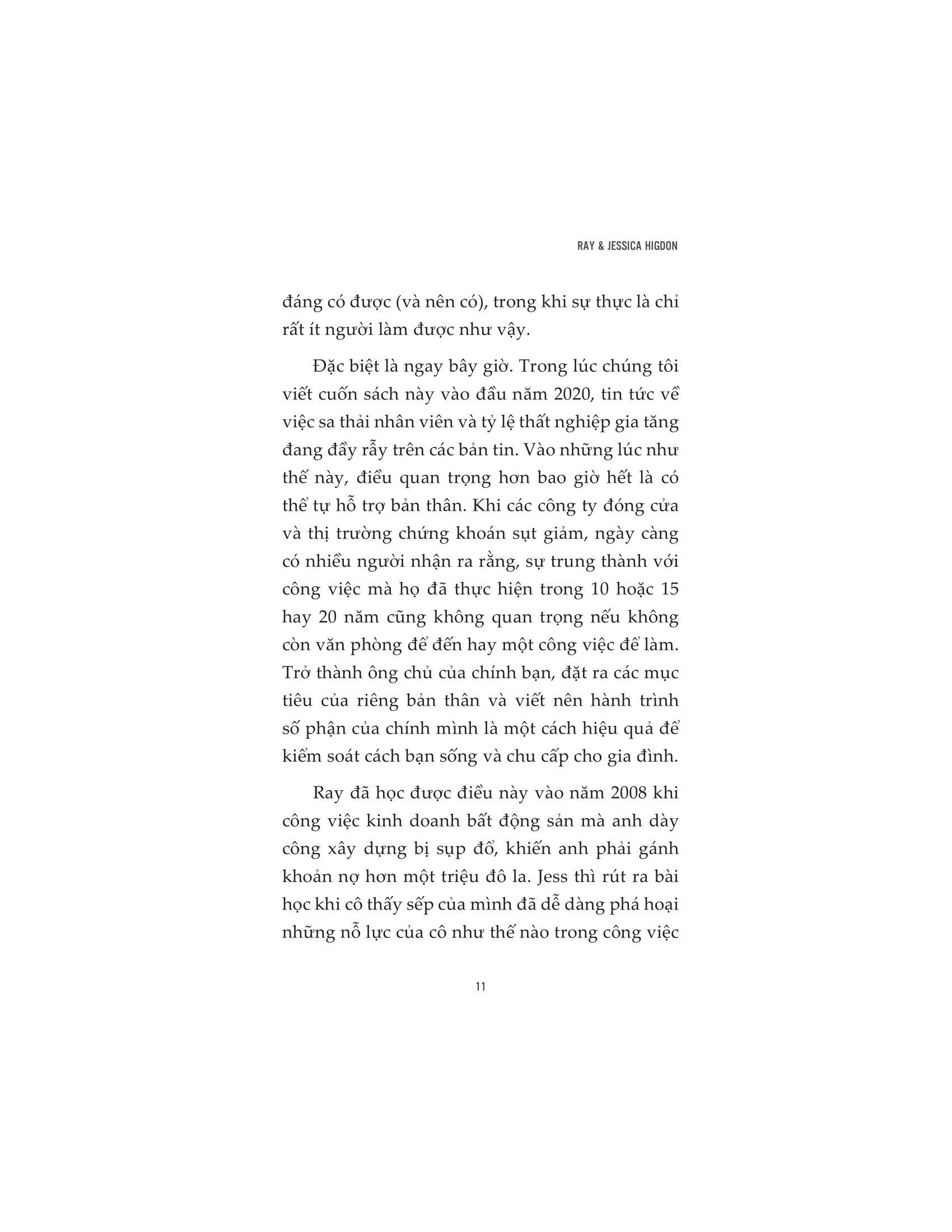 Bên cạnh đó, cuốn sách đưa ra những lời khuyên thiết thực theo từng bước để thúc đẩy bạn hành động, nhằm đạt được sự tự do về công việc, tài chính và tìm thấy lẽ sống của cuộc đời. Cuốn sách này không nói về việc dành ra cả cuộc đời của bạn để thực hiện những thay đổi mạnh mẽ và chấp nhận các rủi ro lớn, mà xoay quanh việc thực hiện hiệu quả các bước nhỏ để đạt được mục tiêu của bạn - điều này sẽ mang lại cho bạn cơ hội tiến xa như bạn muốn, tùy theo điều kiện của bạn.
