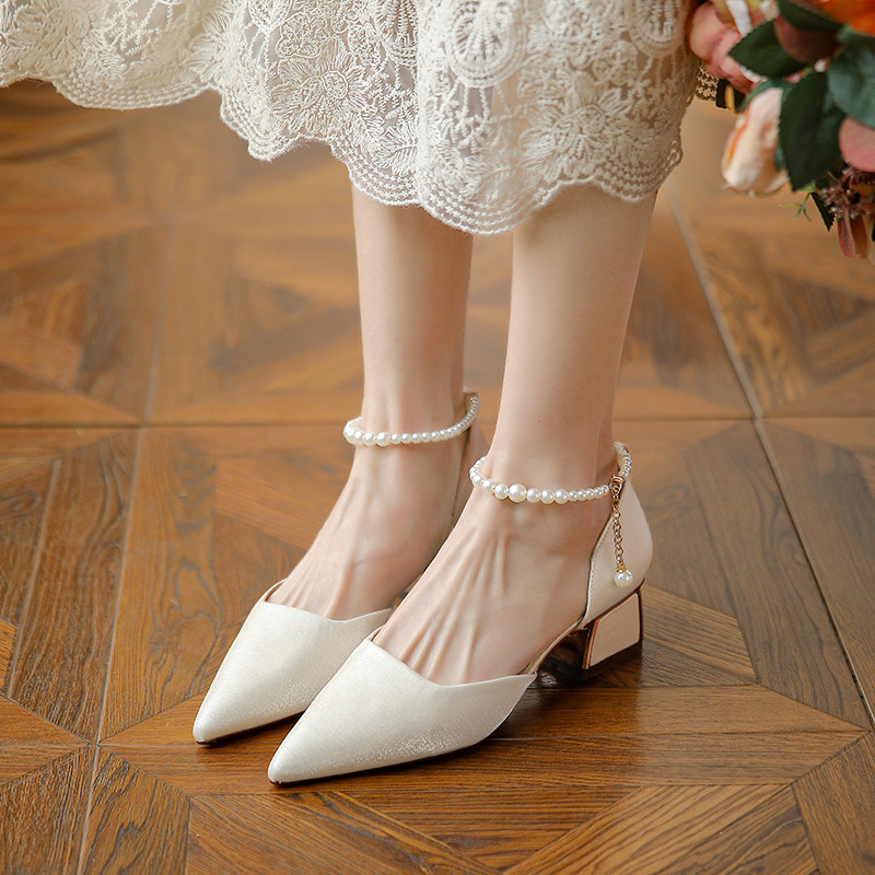 Lắc chân vòng chân ngọc trai phối giày cao gót tiểu thư phụ kiện giày sang chảnh cho nàng. Thiết kế chuỗi ngọc trai đơn giản mà nổi bật, tôn lên vẻ đẹp kiêu kì