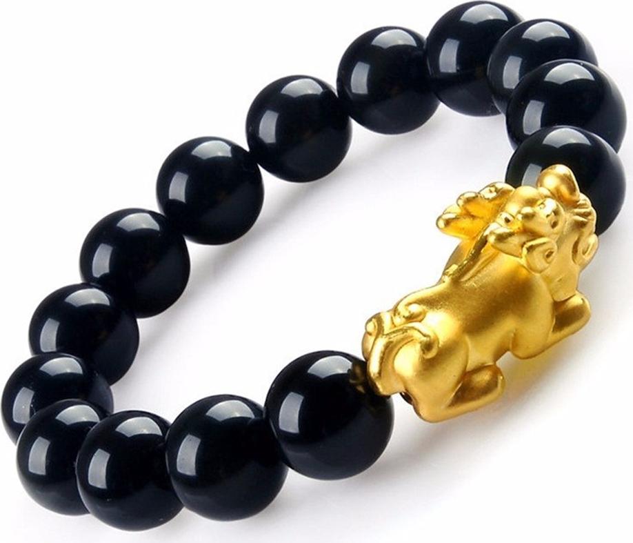 Lắc Đá Opal Đen Charm Tỳ Hưu Bạc Mạ Vàng.