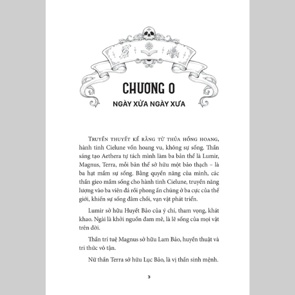 “Hành tinh Cielune là vùng đất của những chủng_tộc ma thuật. Truyền thuyết kể rằng từ thủa hồng hoang, Cielune vốn hoang vu, không có sự sống. Vị thần sáng tạo Aethera tách làm ba bản thể là Lumir, Magnus và Terra. Các thần gieo mầm sự sống cho Cielune và tạo ra ba đại tộc là Nhân tộc, Thú tộc, Tiên tộc. Được thần trí tuệ Magnus ban phước,