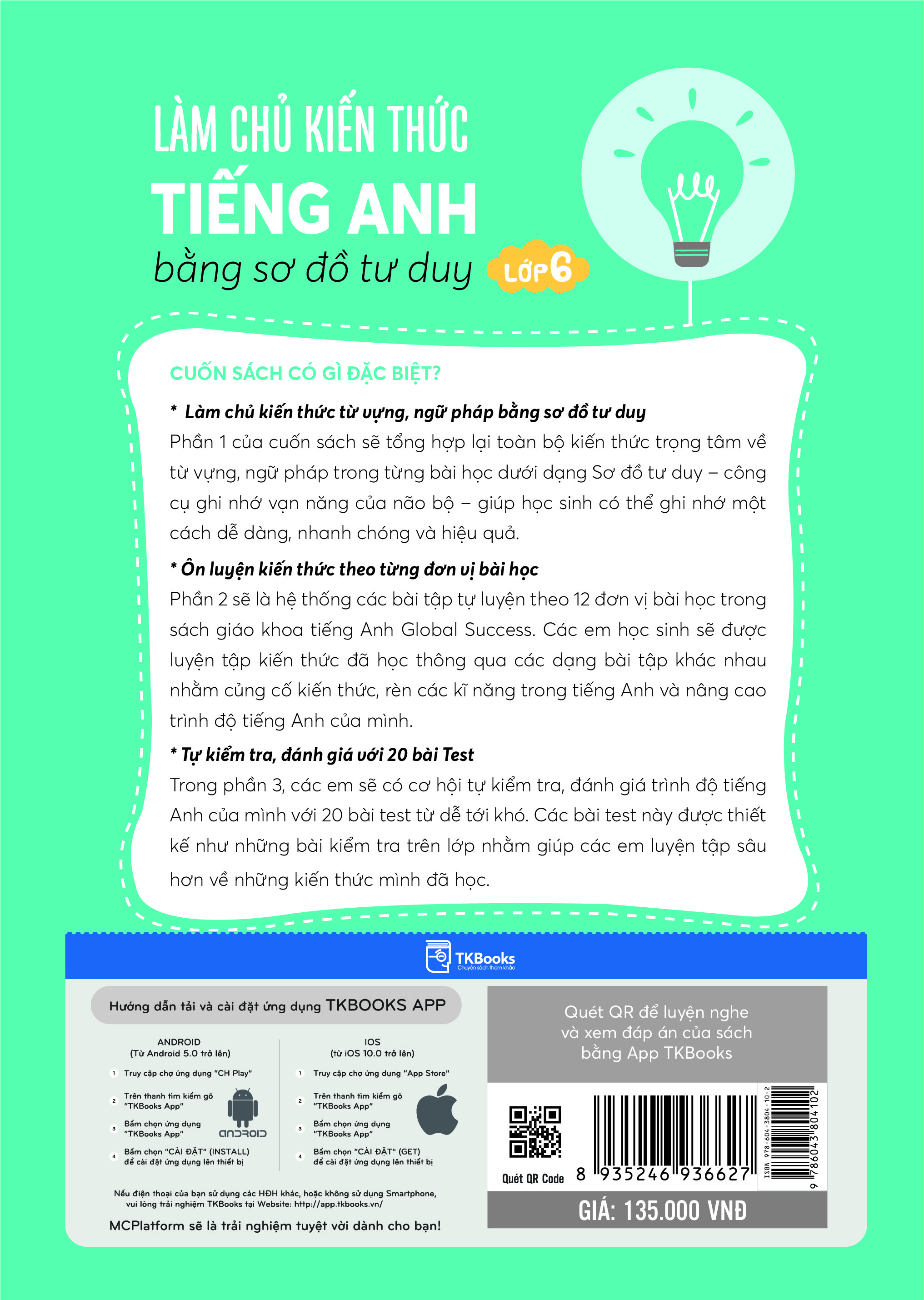 Tiếng Anh là một môn học quan trọng trong chương trình giáo dục các cấp ở Việt Nam. Nhưng học Tiếng Anh như thế nào cho hiệu quả vẫn là câu hỏi khó. Hiểu được điều đó, cuốn sách tiếng anh “Làm chủ kiến thức tiếng Anh bằng sơ đồ tư duy Lớp 6” đã được phát hành nhằm đưa ra phương pháp học Tiếng Anh giúp tăng khả năng ghi nhớ tối đa của bộ não.