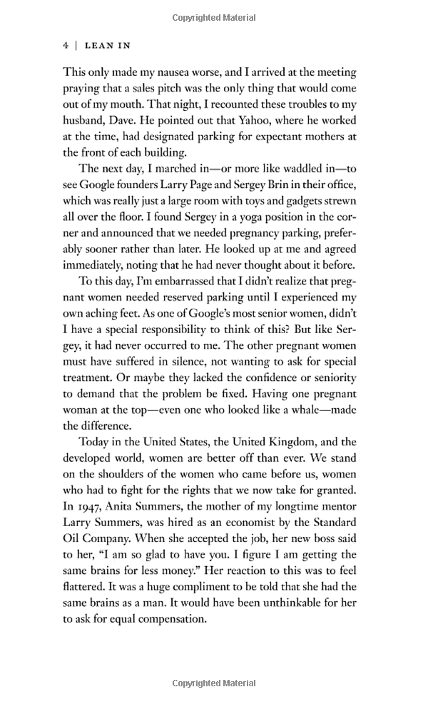 In Lean In, Sandberg digs deeper into these issues, combining personal anecdotes, hard data, and compelling research to cut through the layers of ambiguity and bias surrounding the lives and choices of working women. She recounts her own decisions, mistakes, and daily struggles to make the right choices for herself, her career, and her family. She provides practical advice on negotiation techniques, mentorship, and building a satisfying career, urging women to set boundaries and to abandon the myth of “having it all.” She describes specific steps women can take to combine professional achievement with personal fulfillment and demonstrates how men can benefit by supporting women in the workplace and at home.