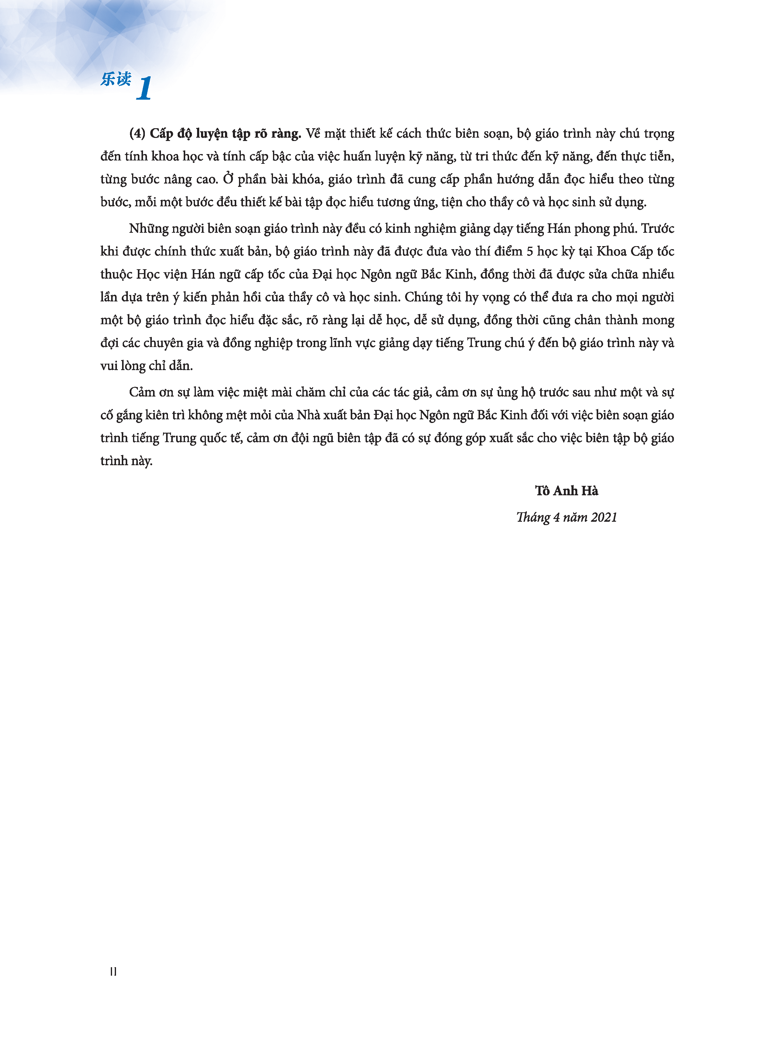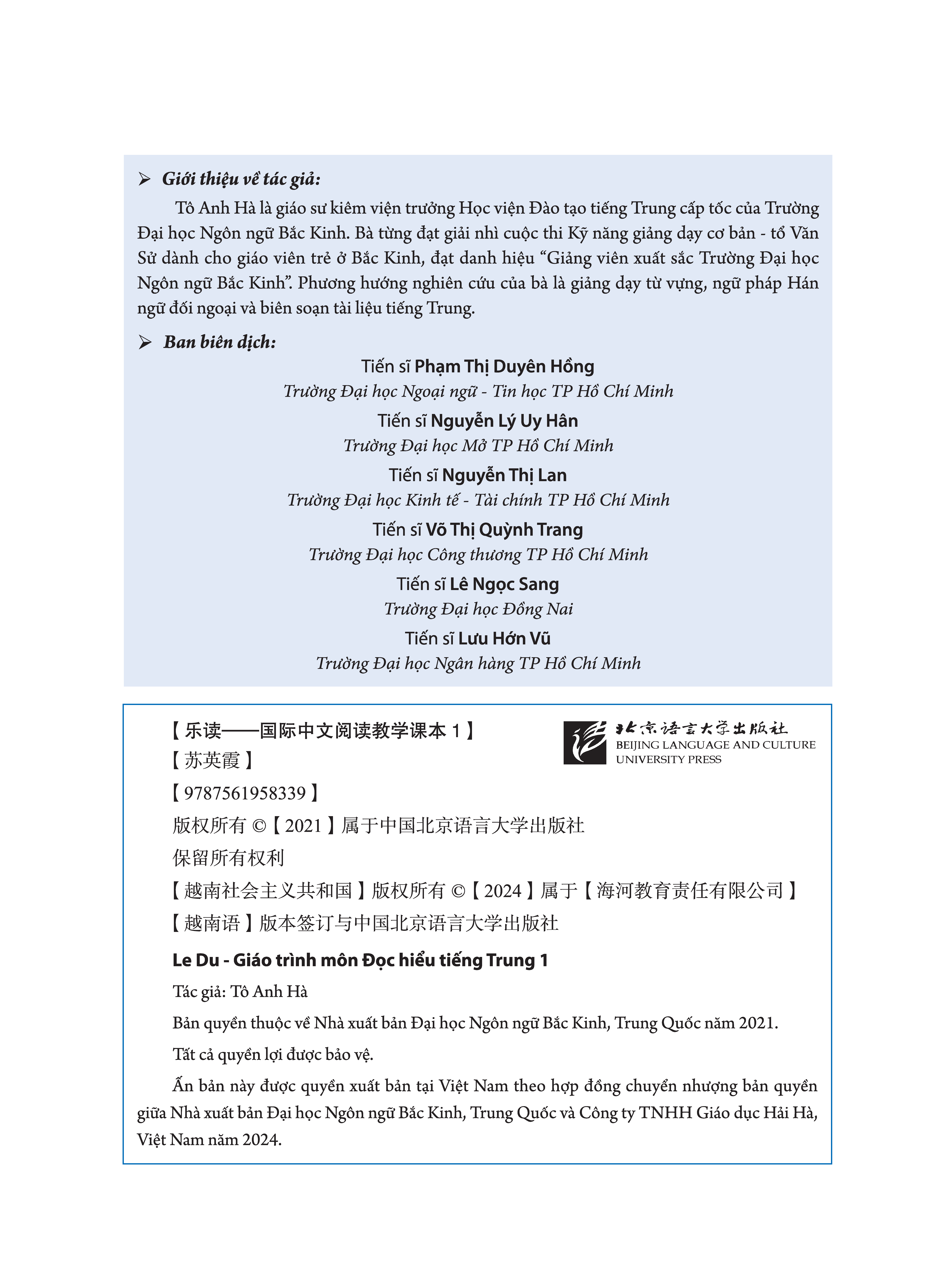 Trên đây là một số thuyết minh về mục tiêu giảng dạy, đối tượng thích hợp sử dụng, nội dung thể lệ và phương pháp sử dụng “Le Du - Giáo trình môn Đọc hiểu tiếng Trung, quyển 1”, xin đưa ra để tham khảo.