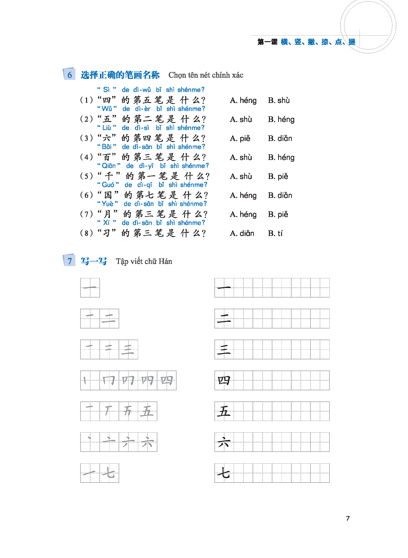 Mảng này giảng giải những tri thức cơ sở về chữ Hán, đồng thời thiết kế phần “Luyện tập” để kiểm tra tình hình lý giải và nắm bắt của học sinh. Phần giảng giải đơn giản, rõ ràng, dễ hiểu, có kèm theo phần dịch tiếng Việt, điều này giúp người học giảm bớt tâm trạng ngại khó khi học chữ Hán, nắm được phương pháp học tập chính xác, nâng cao hứng thú và hiệu suất học tập. Bài 1 và bài 2 chủ yếu giới thiệu về các nét chữ và quy tắc bút thuận của chữ Hán. Bài 3 đến bài 7 giới thiệu về cấu tạo cơ bản của chữ Hán, giảng giải một cách hệ thống về chữ tượng hình, chữ chỉ sự, chữ hội ý và chữ hình thanh; phần chữ hình thanh được chia thành hai bài, một bài chủ yếu giảng giải về ý phù (hình bàng), một bài chủ yếu giảng giải về thanh phù (thanh bàng). Bài 8 giảng giải về ba hiện tượng chữ cận hình, chữ đồng âm và chữ đa âm tồn tại trong tiếng Hán. Bài 9 giới thiệu về mối quan hệ giữa chữ Hán và từ.