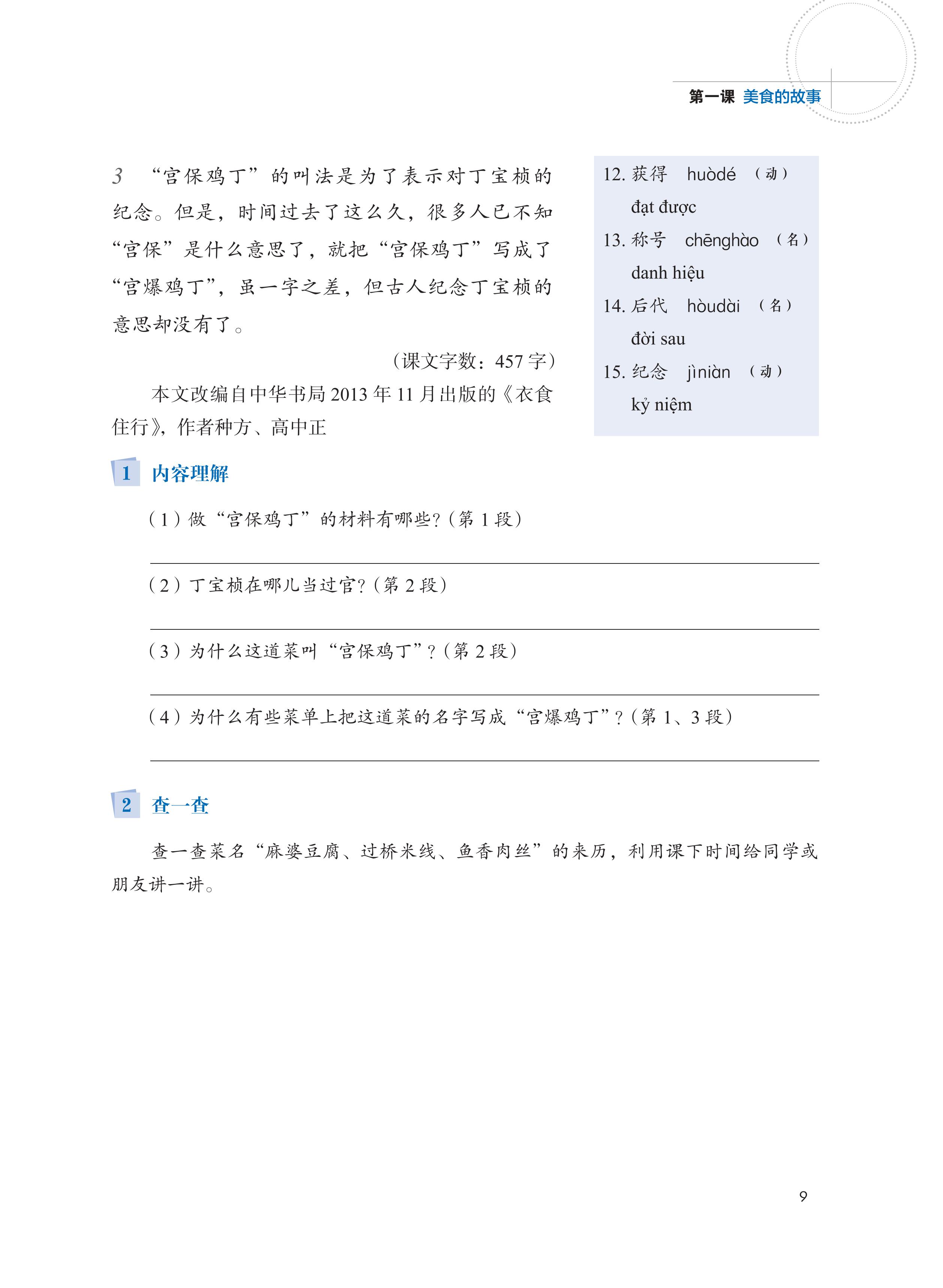 Phần 4: Hán ngữ thú vị. Bao gồm những tri thức thú vị, thục ngữ, ngữ lưu hành trên mạng, v.v., nhằm điều tiết cường độ và tiết tấu đọc, kết hợp giải trí với học tập.