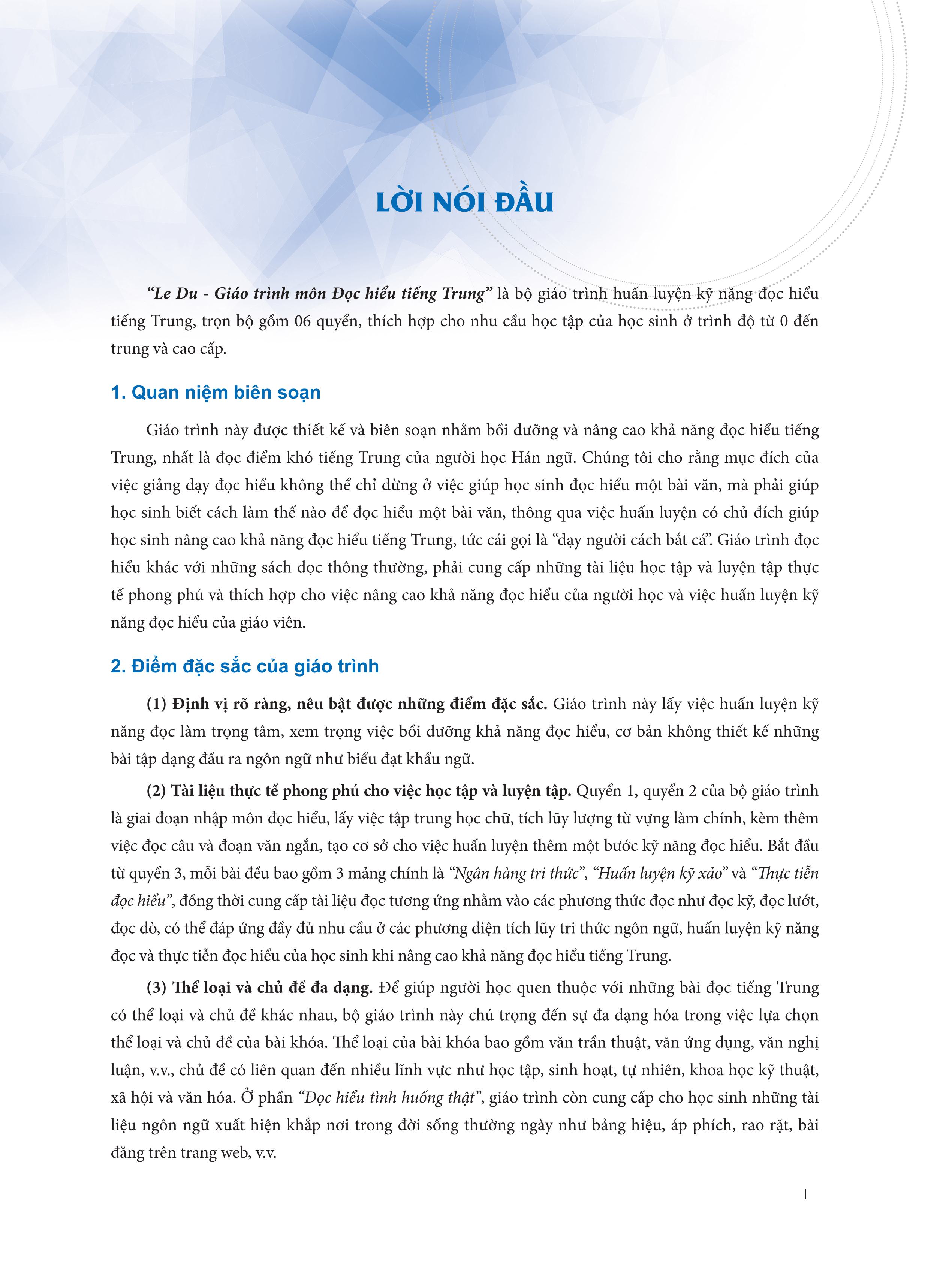 “Le Du - Giáo trình môn Đọc hiểu tiếng Trung” là bộ giáo trình huấn luyện kỹ năng Đọc hiểu được biên soạn cho người học tiếng Trung, được chia thành 06 quyển theo cấp độ khó. Mỗi quyển có trọng tâm ...