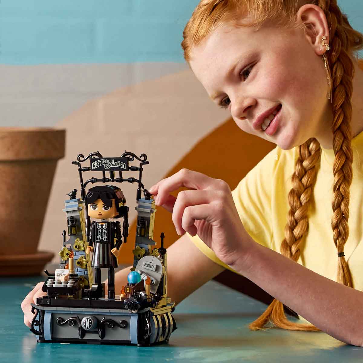 Hóa thân thành nữ chính thông minh, sắc sảo mà bạn yêu thích với bộ mô hình từ loạt phim đình đám Wednesday. Hãy lắp ráp và tạo dáng cho Wednesday Addams với ánh nhìn lạnh lùng cùng bộ đồng phục đặc trưng, hoặc ánh mắt tinh quái khi cô khiêu vũ tại Rave’N Dance trong chiếc váy đen. Đặt cô ấy lên bệ cùng cổng vào Học viện Nevermore, người bạn đồng hành trung thành – Thing, cùng các phụ kiện như máy đánh chữ, quả cầu pha lê và ngăn chứa đồ có thể khóa. Thỏa mãn niềm đam mê của người hâm mộ Wednesday Addams với bộ đồ chơi lắp ráp có thể trưng bày và sáng tạo: