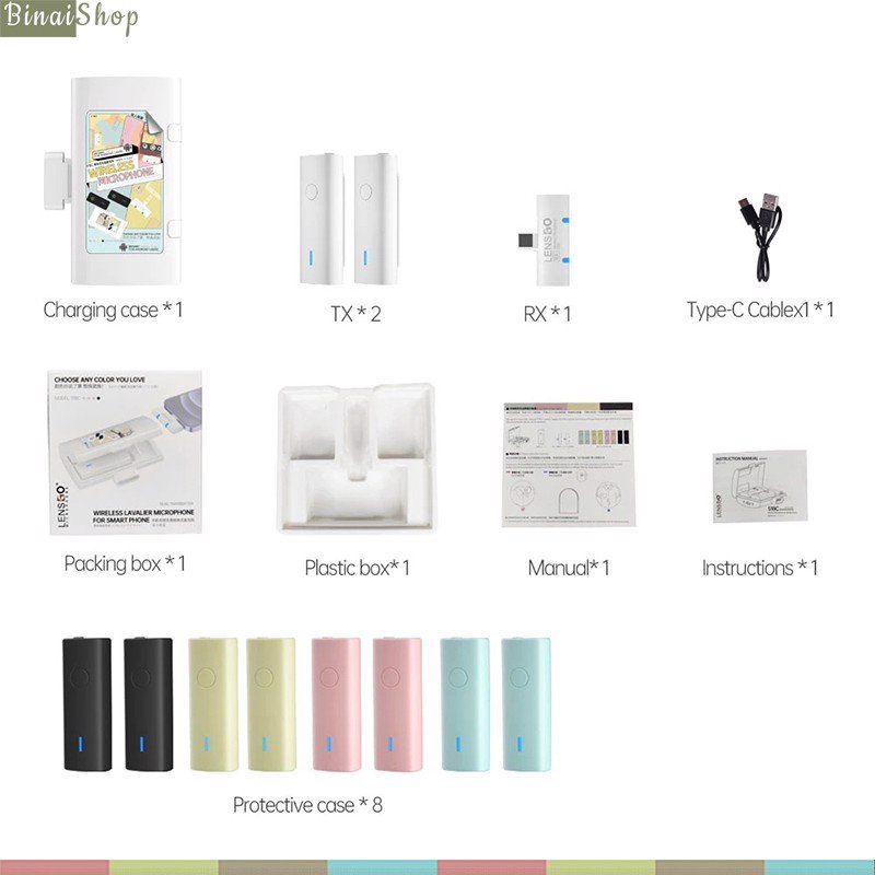 ✨Lensgo LWM-518C - Micro Cài Áo Không Dây 2.4GHz, Thu Âm Cho Điện Thoại Làm Vlog, Phát Trực Tiếp- Hàng chính hãng