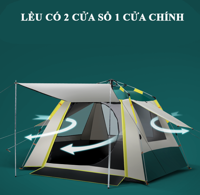 Lều cắm trại tự bung dành cho 3-5 người - chống thấm nước, chống nắng cực tốt, thông gió mát mẻ.
