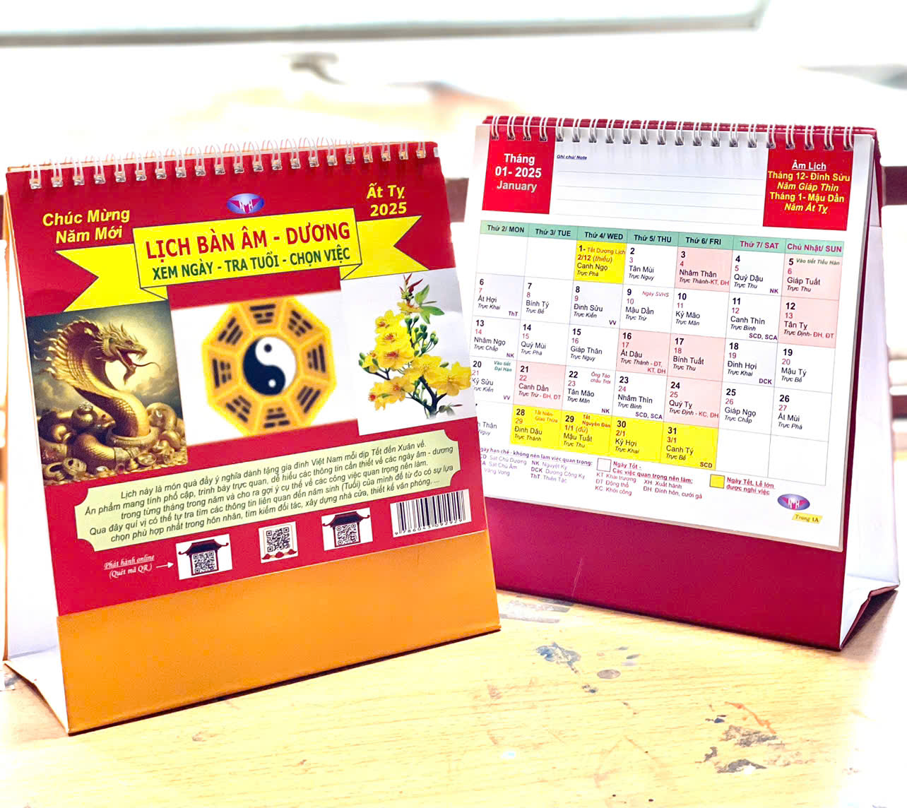Lịch bàn khổ 19x17 (cm), gồm 26 trang (in 2 mặt) có đầy đủ thông tin về ngày âm - dương , giúp chọn được ngày tốt, hạn chế ngày xấu, ...