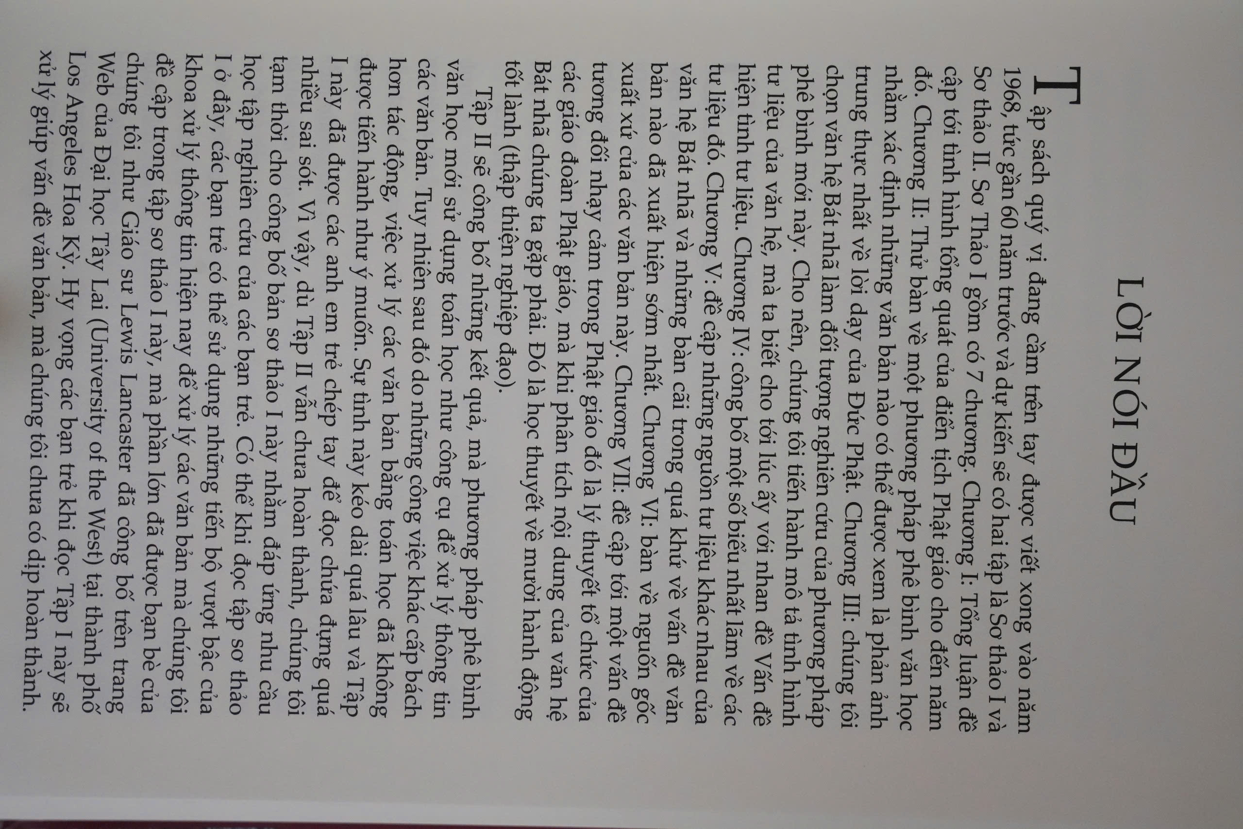 Tập II sẽ công bố những kết quả, mà phương pháp phê bình văn học mới sử dụng toán học như công cụ để xử lý thông tin các văn bản. Tuy nhiên sau đó do những công việc khác cấp bách hơn tác động, việc xử lý các văn bản bằng toán học đã không được tiến hành như ý muốn. Sự tình này kéo dài quá lâu và Tập I này đã được các anh em trẻ chép tay để đọc chứa đựng quá nhiều sai sót. Vì vậy, dù Tập II vẫn chưa hoàn thành, chúng tôi tạm thời cho công bố bản sơ thảo I này nhằm đáp ứng nhu cầu học tập nghiên cứu của các bạn trẻ. Có thể khi đọc tập sơ thảo 1 ở đây, các bạn trẻ có thể sử dụng những tiến bộ vượt bậc của khoa xử lý thông tin hiện nay để xử lý các văn bản mà chúng tôi đề cập trong tập sơ thảo I này, mà phần lớn đã được bạn bè của chúng tôi như Giáo sư Lewis Lancaster đã công bố trên trang Web của Đại học Tây Lai (University of the West) tại thành phố Los Angeles Hoa Kỳ. Hy vọng các bạn trẻ khi đọc Tập I này sẽ xử lý giúp vấn đề văn bản, mà chúng tôi chưa có dịp hoàn thành.
