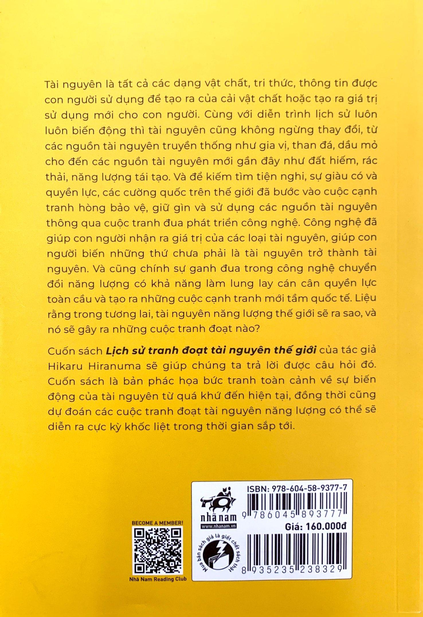 Cuốn sách Lịch sử tranh đoạt tài nguyên thế giới của tác giả Hikaru Hiranuma sẽ giúp chúng ta trả lời được câu hỏi đó. Cuốn sách là một bản phác họa của bức tranh toàn cảnh về sự biến động của tài nguyên từ quá khứ đến hiện tại, đồng thời đưa ra những nhận định về xu hướng phát triển của tài nguyên trong tương lai, cũng như dự đoán các cuộc tranh đoạt tài nguyên năng lượng có thể sẽ diễn ra cực kỳ khốc liệt trong thời gian sắp tới.