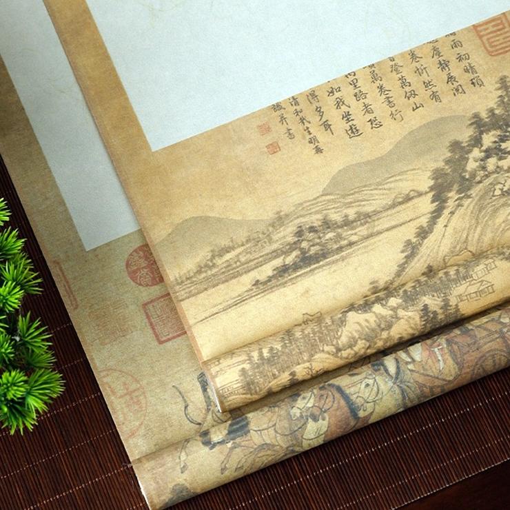 Cuộn giấy xuyến chỉ cao cấp in tranh sơn thủy viết thư pháp