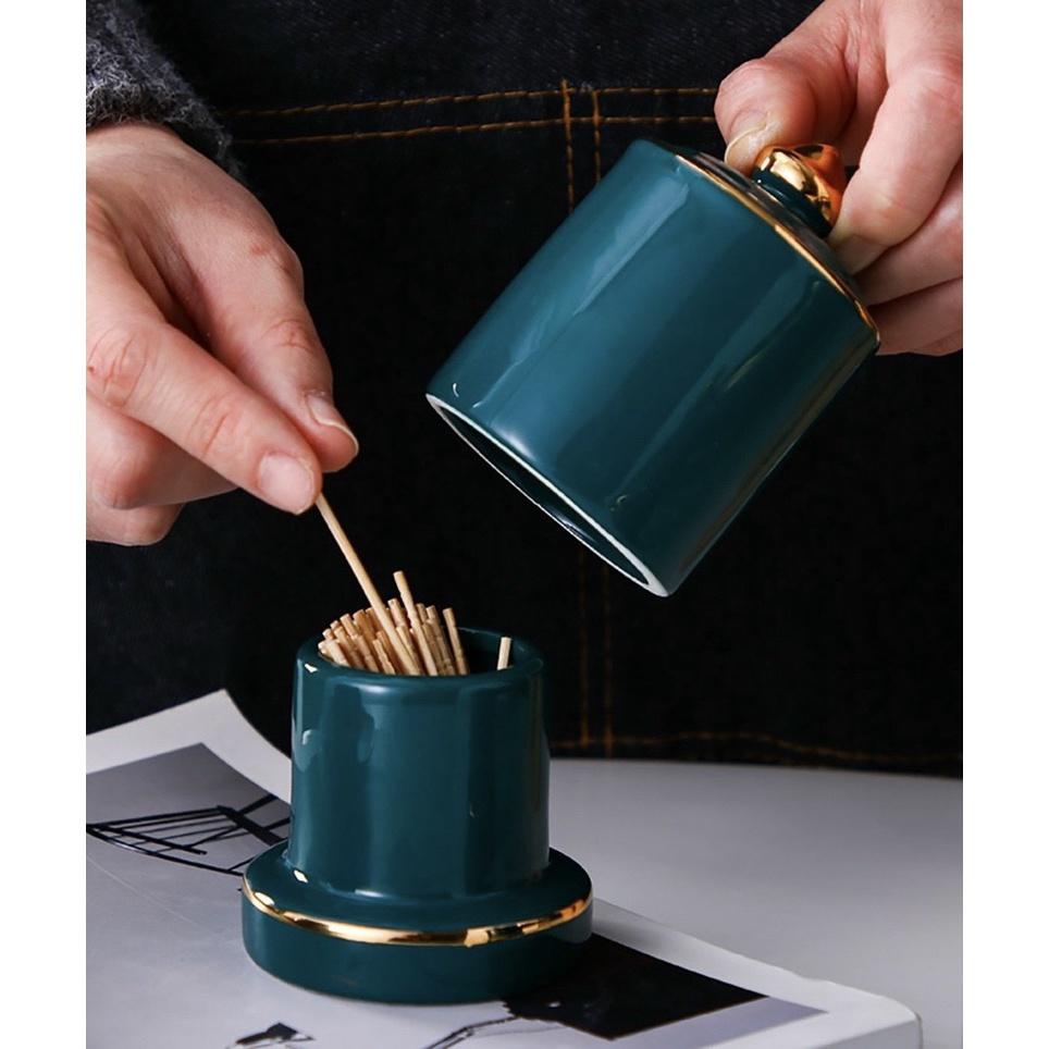 Hũ tăm bằng sứ cao cấp Màu sắc sang trọng Ngoài công dụng chính còn là phụ kiện trang trí trên bàn ăn