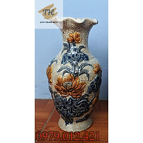 ✨Lọ hoa miện lượn Bát Tràng men rạn đắp nổi hoa Sen Bát Tràng cao 32cm