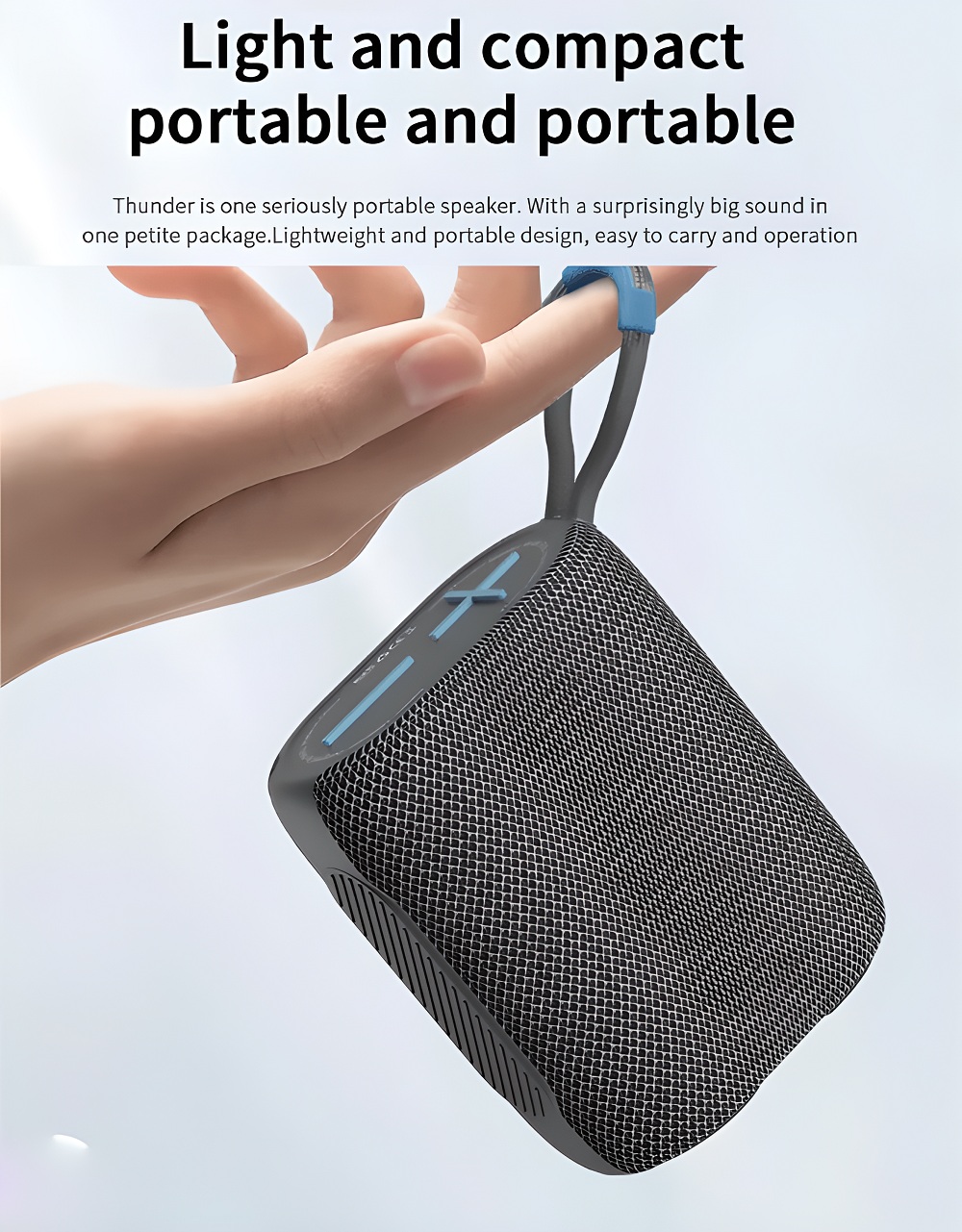Loa bluetooth chống nước chuẩn IPx7 hiệu WIWU Thunder P26 Thuộc phân khúc loa di động kết nối đa tính năng như nghe đài FM, phát nhạc thẻ SD, USB và đầu vào AUX 3.5mm cắm trực tiếp từ thiết bị phát nhạc không qua bluetooth.