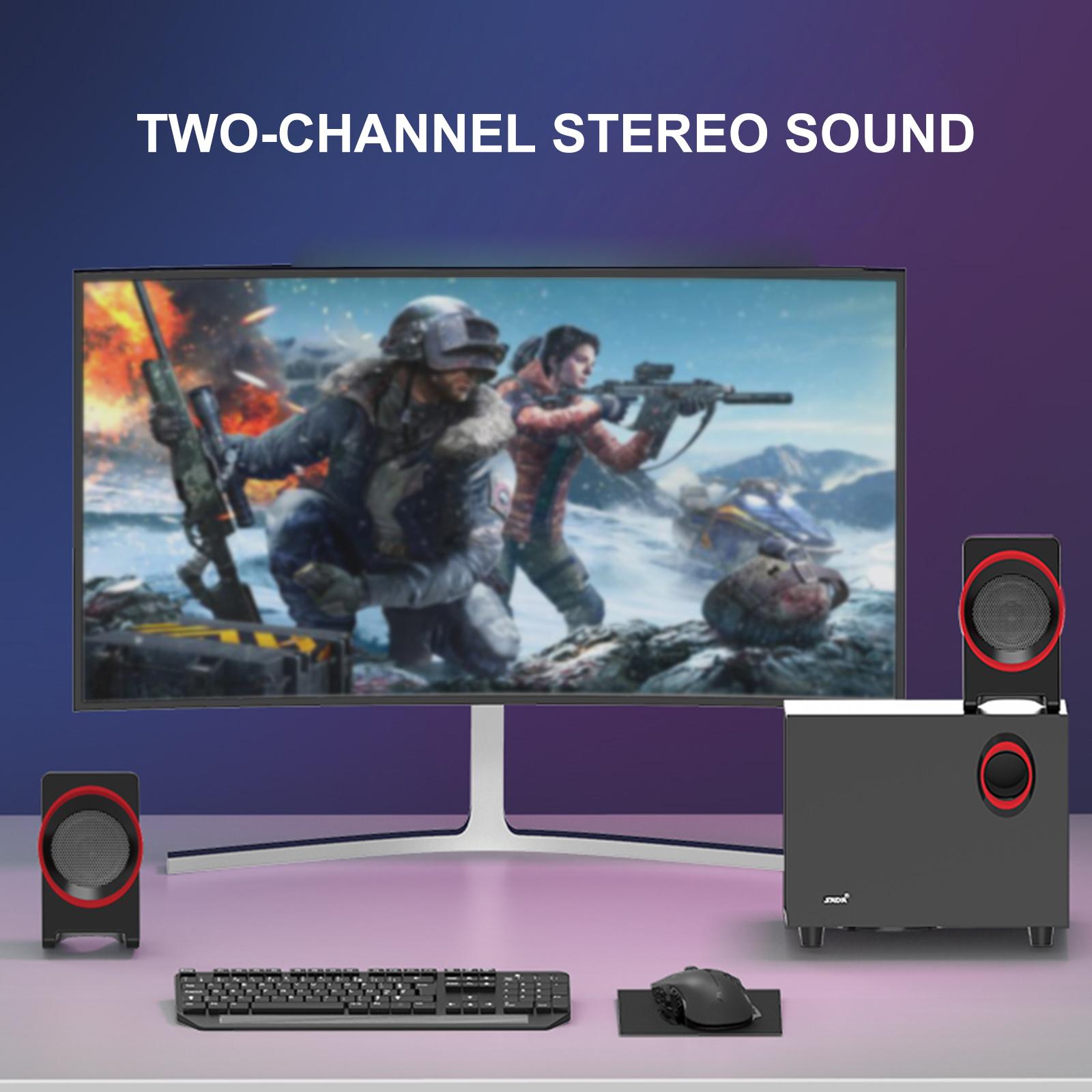 Features: Comes with 2*5W double horns, surround sound and the deep bass matched, bringing you high-quality music. Compatible with computer, mobile phone, TV, tablet, game consoles and other 3.5mm audio devices. Independent volume knob, convenient