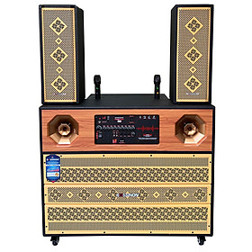 _Nguồn AC + DC _Hỗ trợ USB SD CARD Bluetooth Jack 3.5 _Phụ kiện 2 mic cầm tay không dây, adapter. remote _Công suất: 80Watts