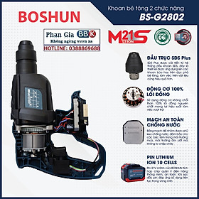 Máy Khoan Bê Tông Pin 3 Chức Năng BOSHUN BS-R2803H - Chân pin phổ thông - Bảo hành chính hãng