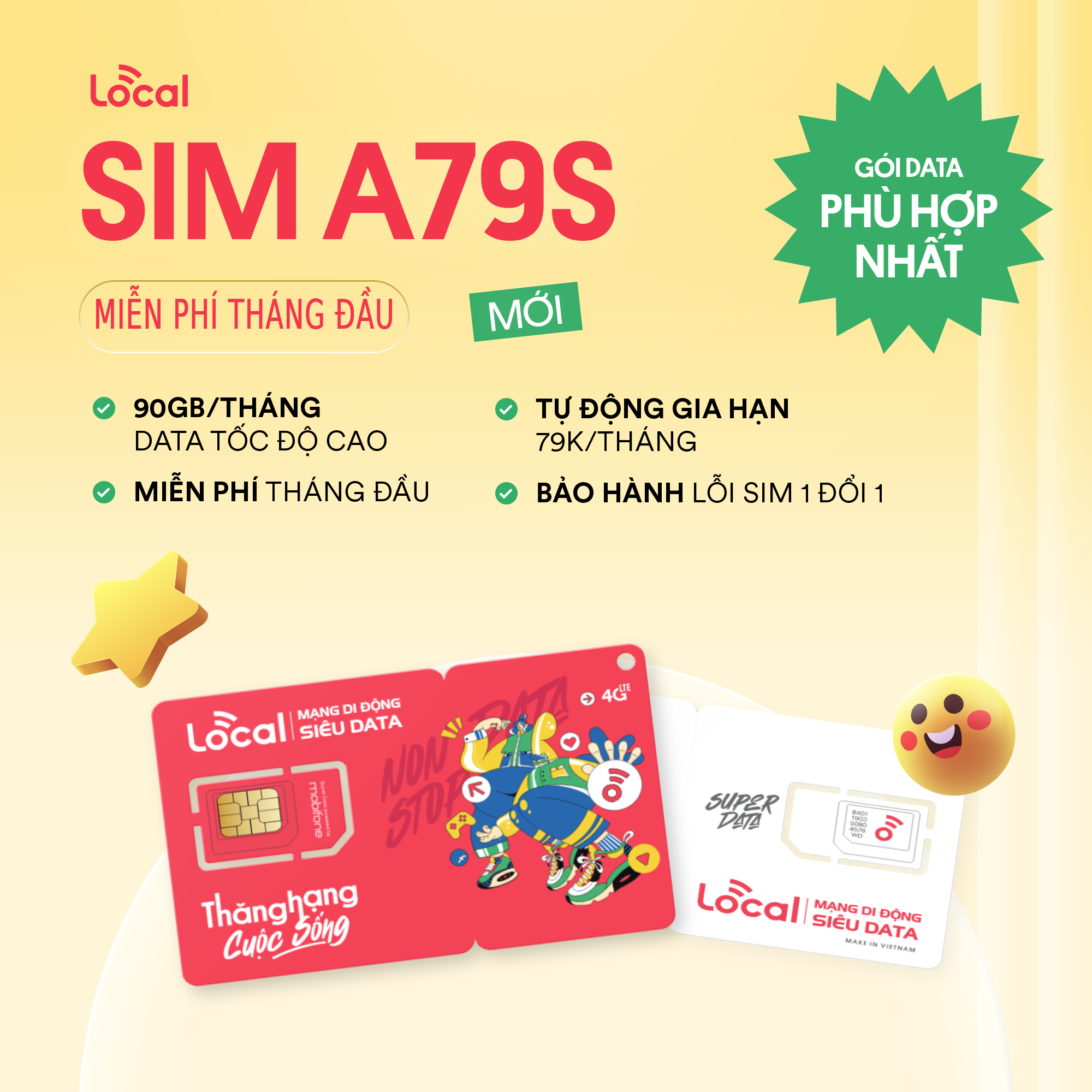 SIM LOCAL A79S Mới - SIM 4G Siêu Data, Chỉ 79K/Tháng