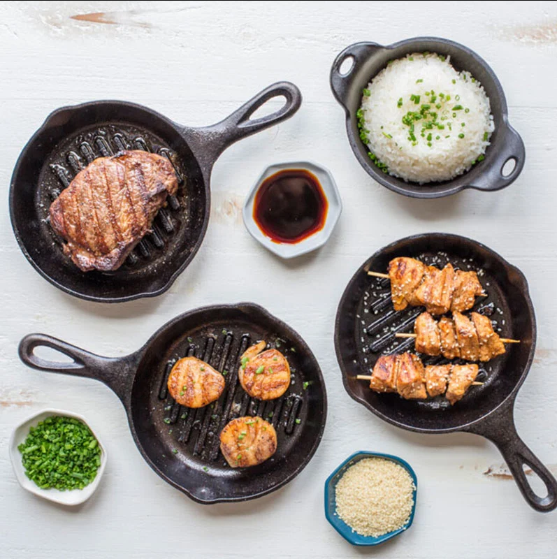 Chảo gang nướng lý tưởng làm các món áp chảo, nướng như bò bít tết, gà, nướng bánh mì…