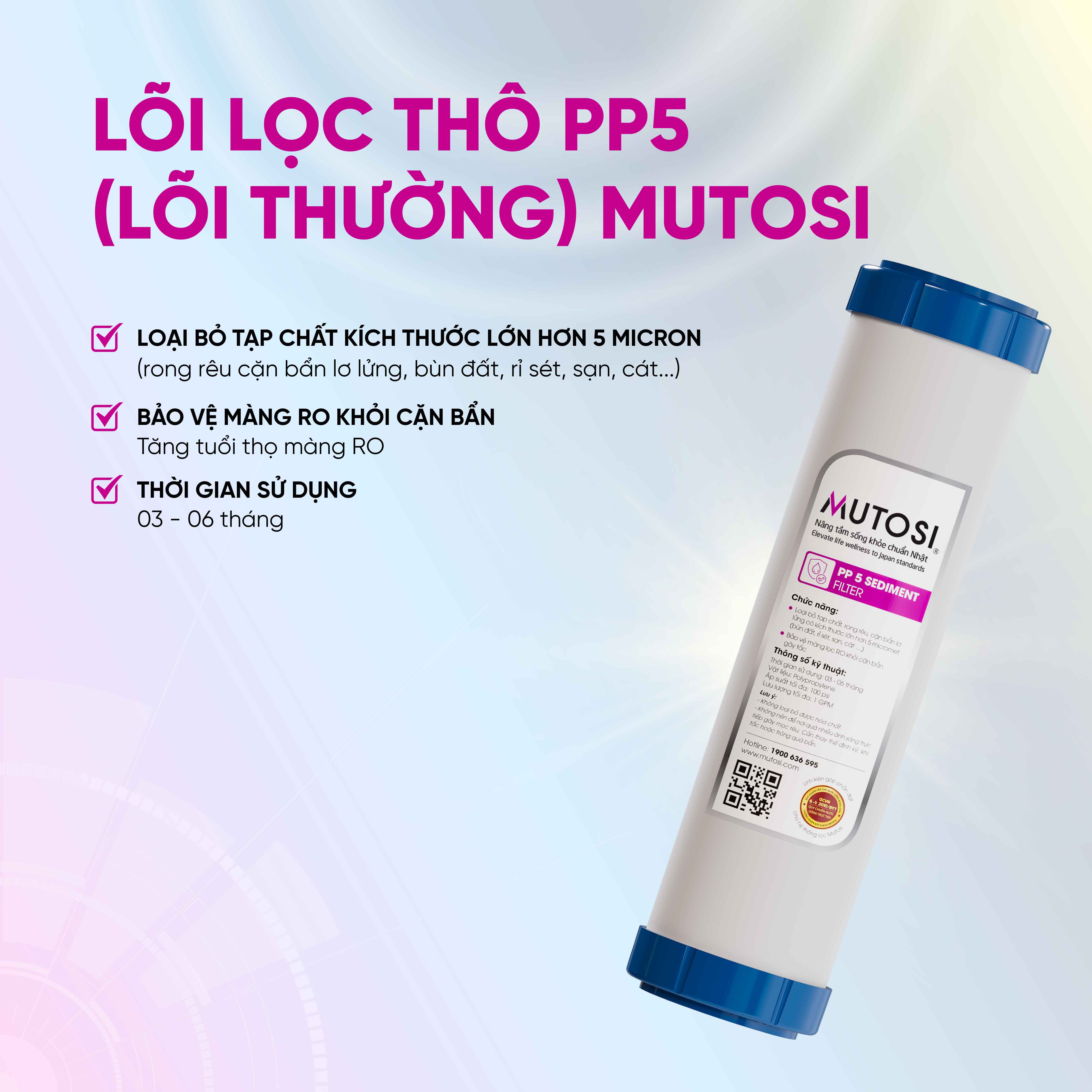 Lõi PP 5 micron là lõi lọc số 1 (lọc thô) được sản xuất trực tiếp tại Việt Nam, được áp dụng cho hầu hết các dòng máy lọc nước trên thị thường.