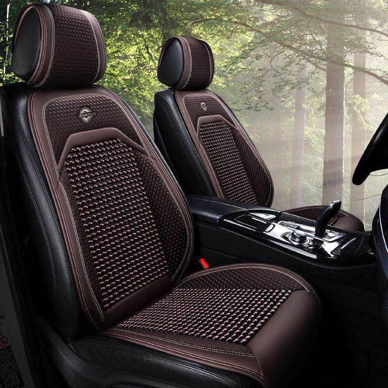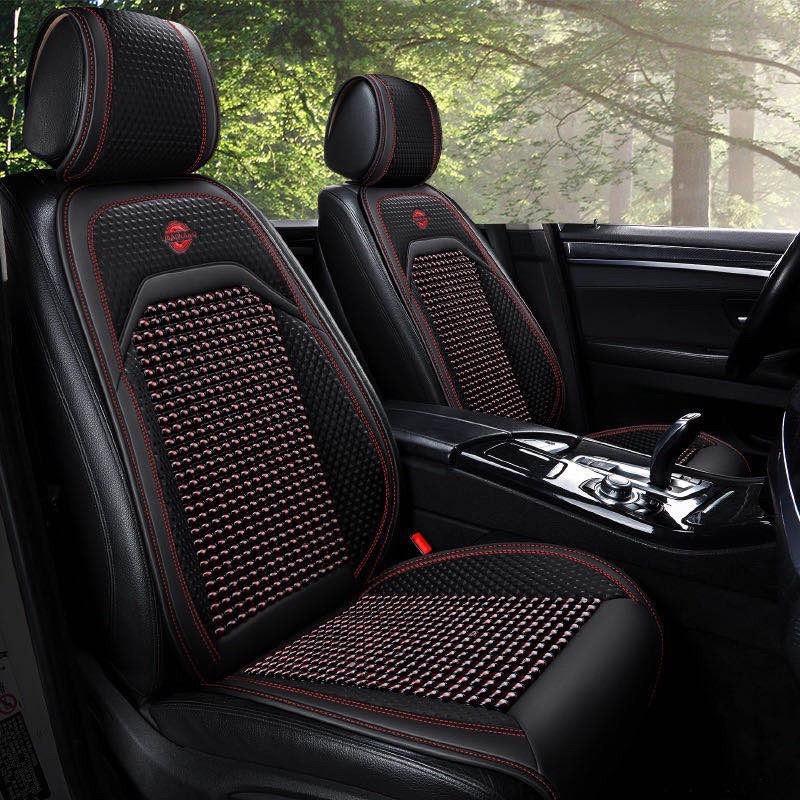 ✨Lót Ghế Hạt Gỗ Ô Tô Phối Da Cao Cấp Libai - Lót Ghế Xe Hơi Chống Nóng, Thoáng Khí, Massage Lưng, Bảo Vệ Da Ghế Xe