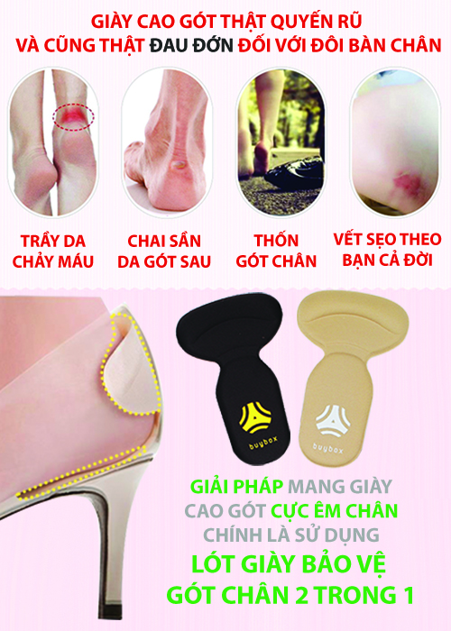 - Từ nay không còn phải lo lắng nữa vì đã có lót giày chống tuột gót, bảo vệ tuyệt đối gót chân của bạn. CÔNG DỤNG NỔI BẬT