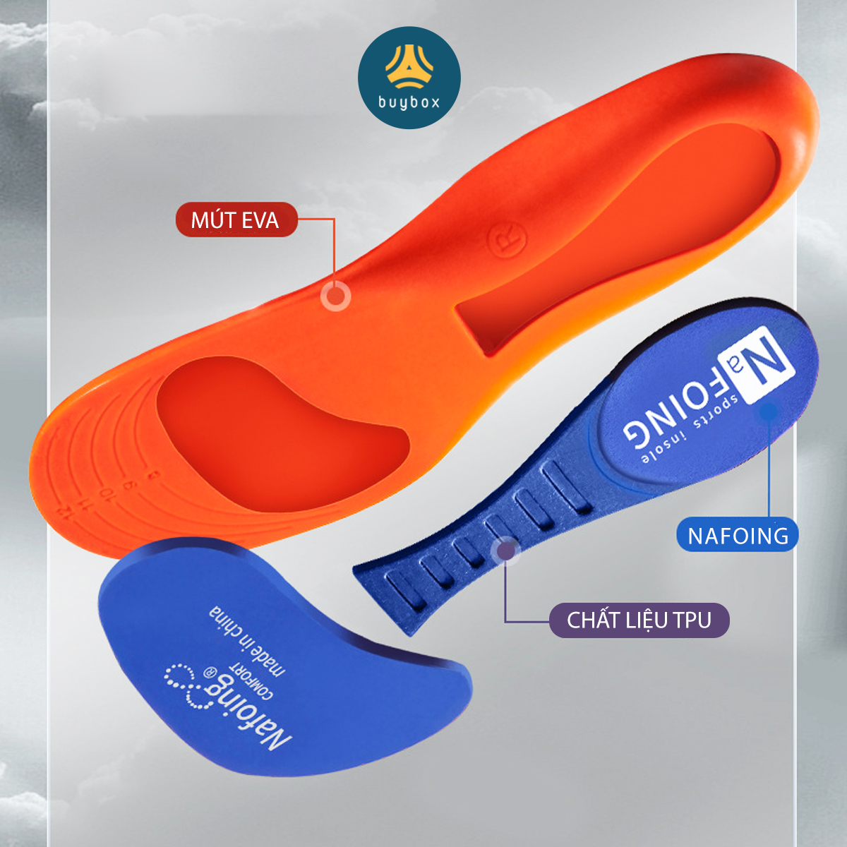 LÓT GIÀY THỂ THAO EVA CÔNG DỤNG NỔI BẬT Lót giày thể thao được thiết kế rãnh giảm sốc ở mặt dưới giúp giảm mỏi lòng bàn chân và gel chống thốn gót Lót giày