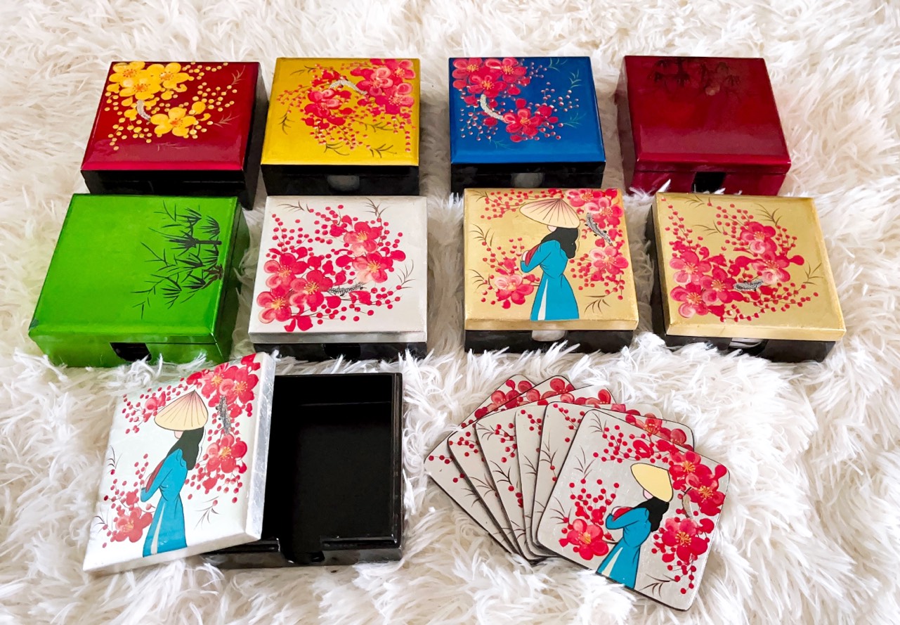 Hộp lót ly sơn mài cao cấp, là hàng thủ công mỹ nghệ độc đáo bởi từ khâu nguyên liệu được người nghệ sĩ làm rất tỉ mỉ và công phu, cho đến khi hoàn thành sản phẩm