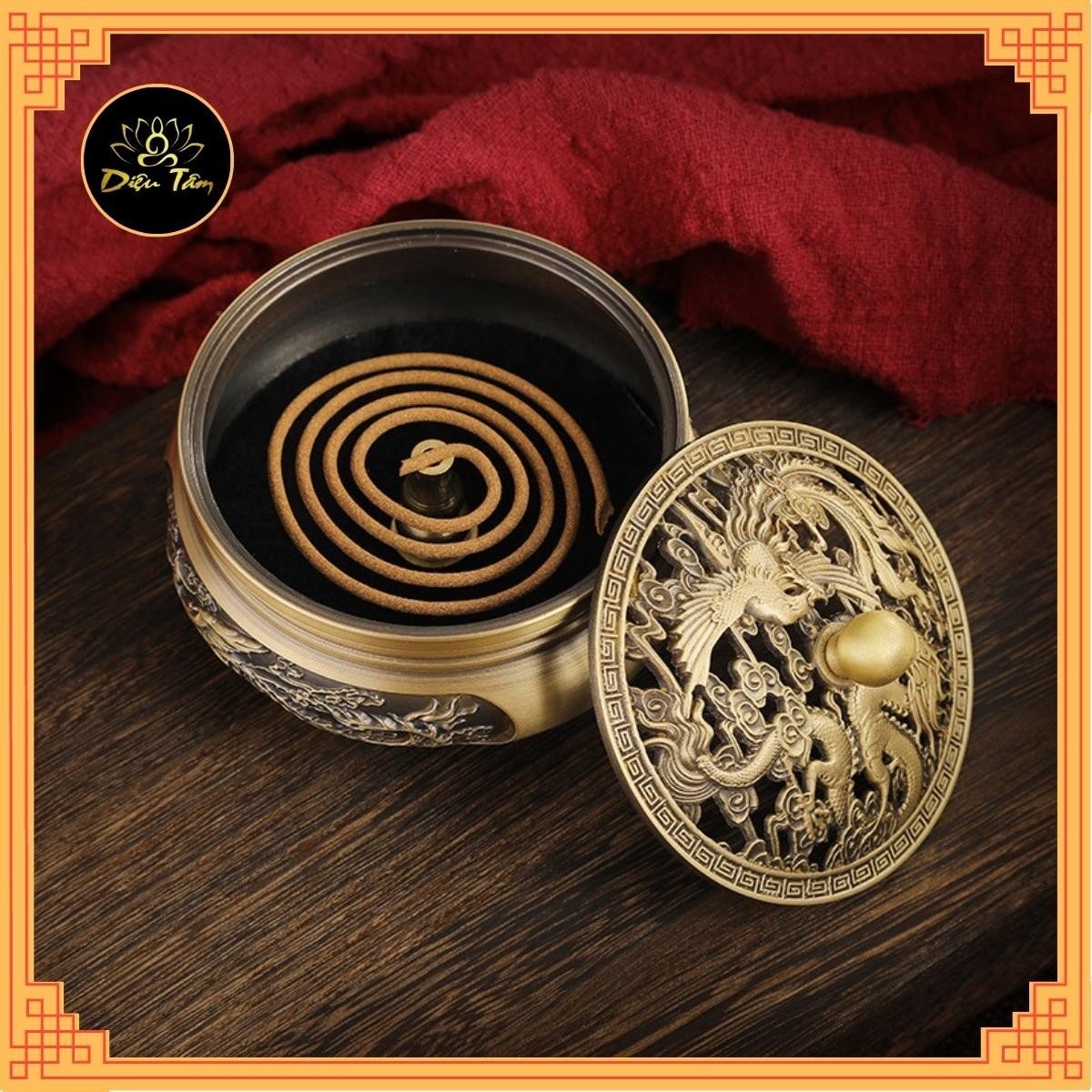 ✨Lư đồng lư xông trầm hương trầm nụ cao cấp thiết kế tinh xảo tặng kèm trụ và lót chống cháy shop Diệu Tâm