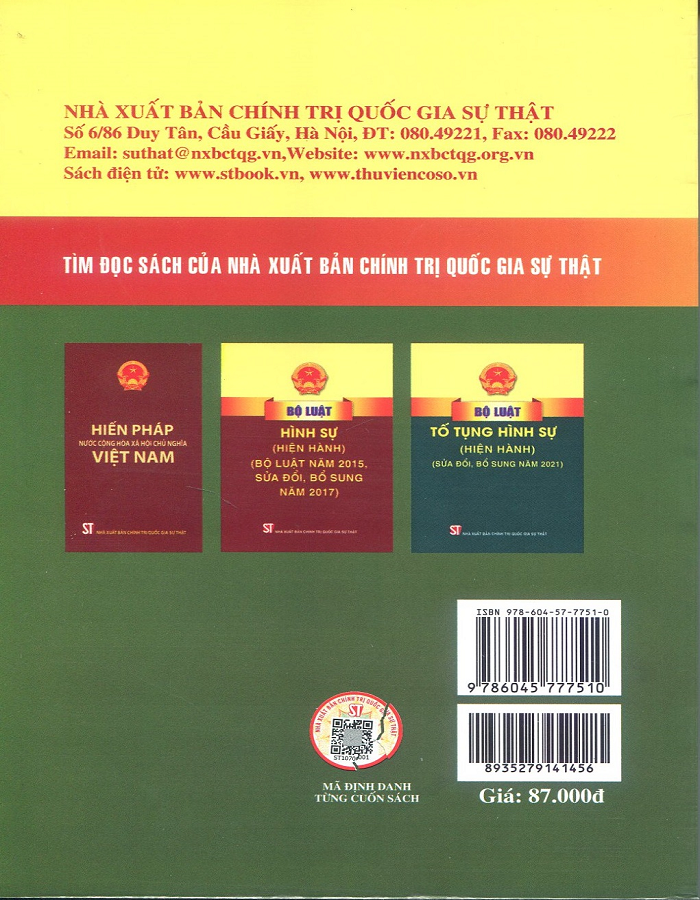 Tác giả: Nhiều tác giả Nhà xuất bản: Chính trị quốc gia sự thật Chiều dài: 21cm Chiều rộng: 15cm Chiều cao: 3cm Số trang: 348 trang Sách Luật Tố Tụng Hành Chính