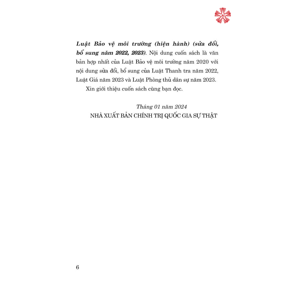 Cuốn sách “Luật Bảo vệ môi trường (hiện hành) (sửa đổi, bổ sung năm 2022, 2023)” cung cấp một cái nhìn toàn diện về những thay đổi và cập nhật trong luật pháp Việt Nam