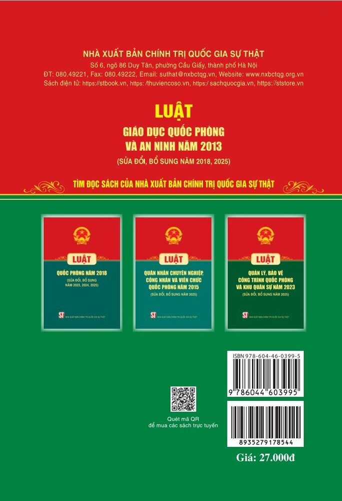 Luật Giáo dục quốc phòng và an ninh năm 2013 (sửa đổi, bổ sung năm 2018, 2025) do Nhà xuất bản Chính trị quốc gia Sự thật phát hành là tài liệu pháp lý quan