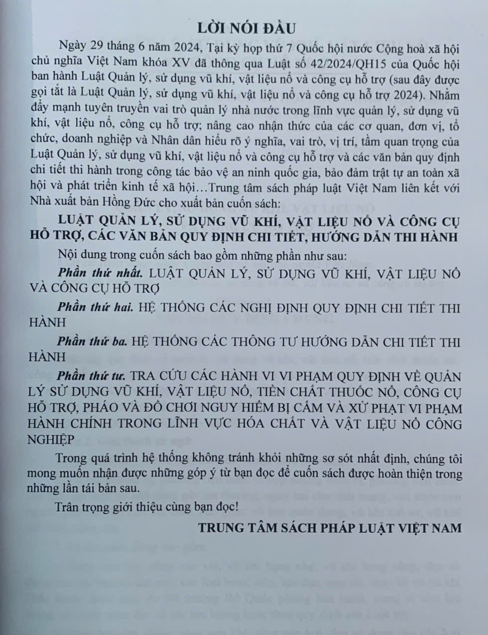 ✨Luật Quản lý, sử dụng vu khi, vật liệu no và công cụ hỗ trơ, các văn bản quy định chi tiết, hướng dẫn thi hành