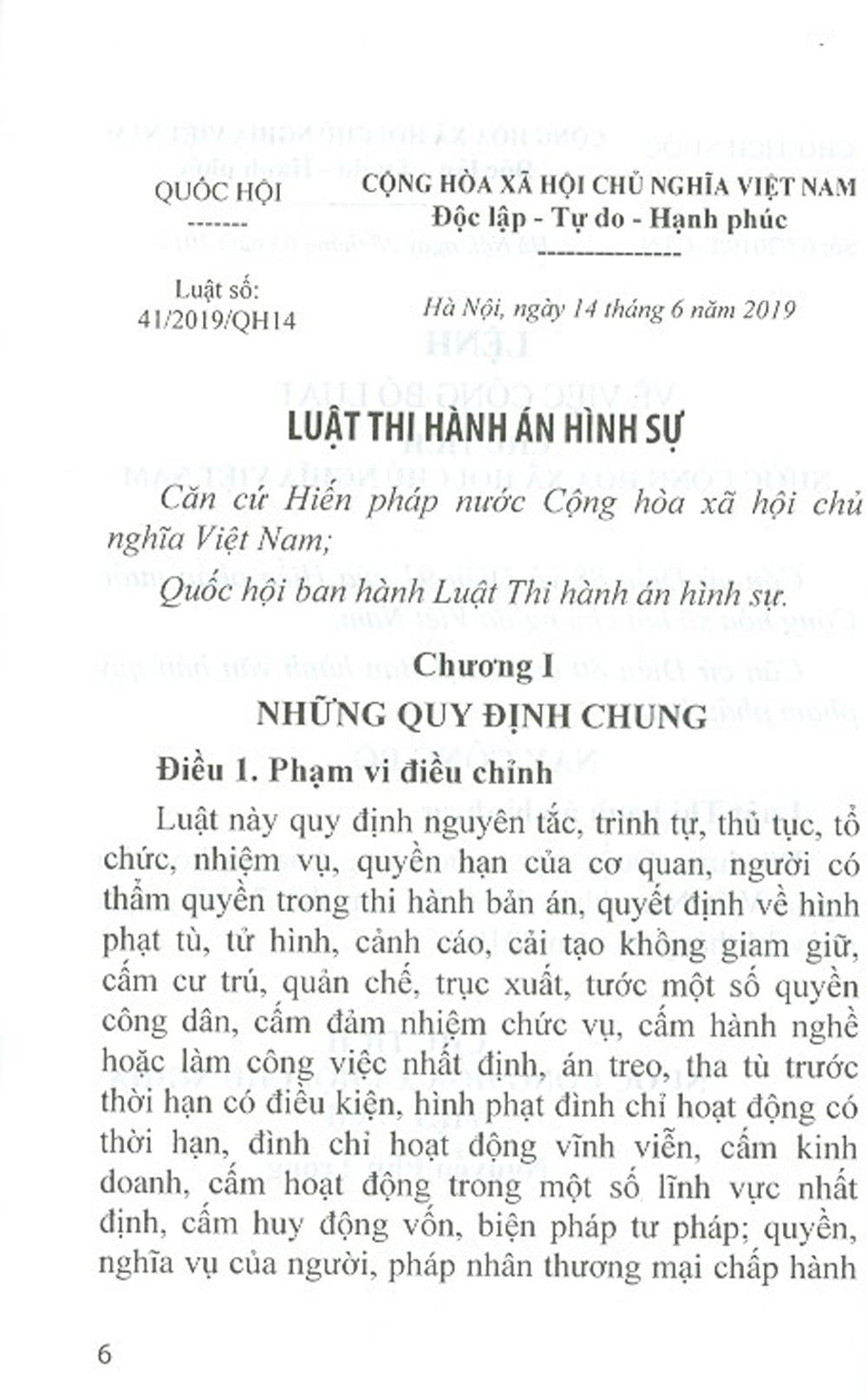 Luật Thi hành án hình sự 2019 Phần 1 Điều 01 Điều 10