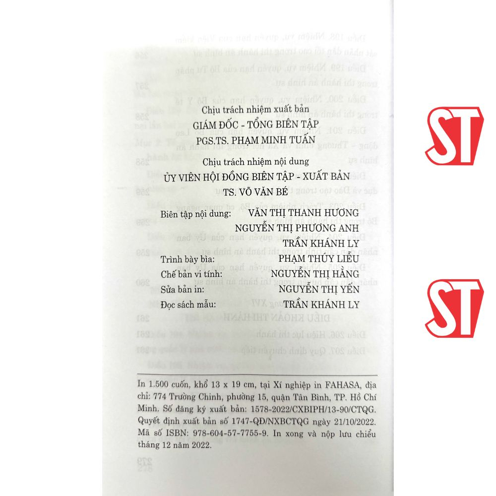 Sách - Luật Thi Hành Án Hình Sự Hiện Hành Tác giả: Quốc Hội Nhà xuất bản: Chính Trị Quốc Gia Sự Thật Khổ sách: 14.5*20.5cm Phát hành: 2022 Công ty phát hành: Nhà sách