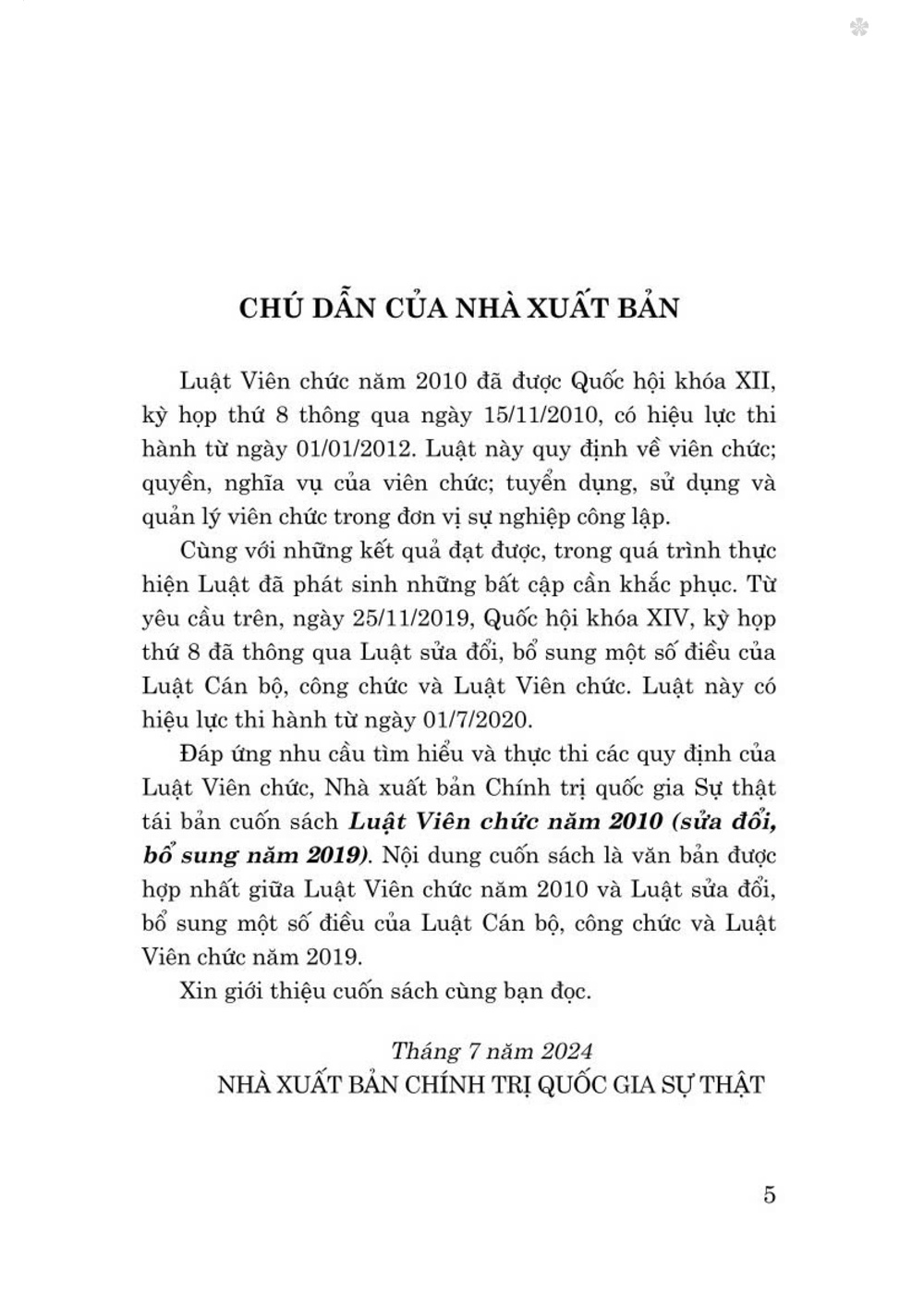 ✨Luật viên chức năm 2010 (sửa đổi, bổ sung năm 2019) bản in 2024